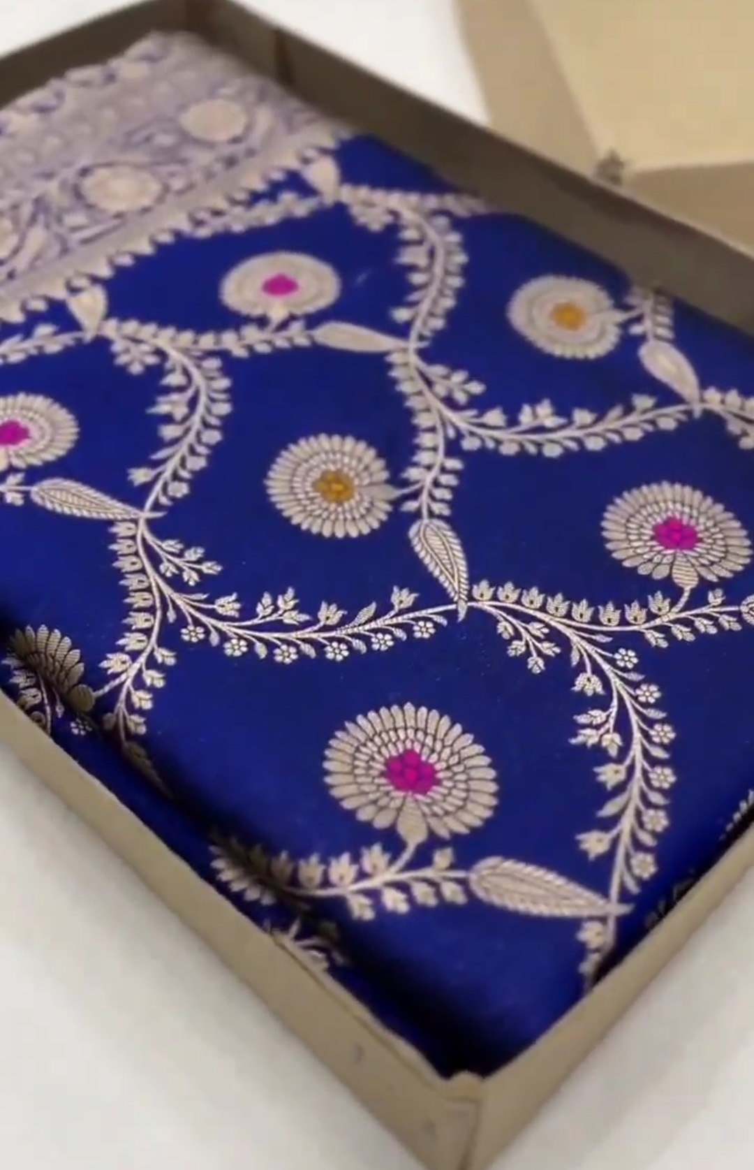 Royal Blue Banarasi Handloom Katan Silk Meenakari Saree