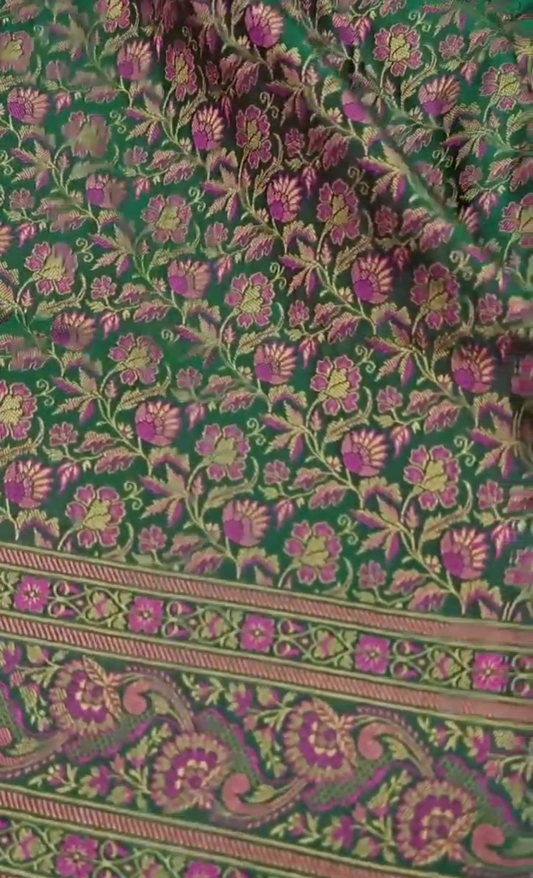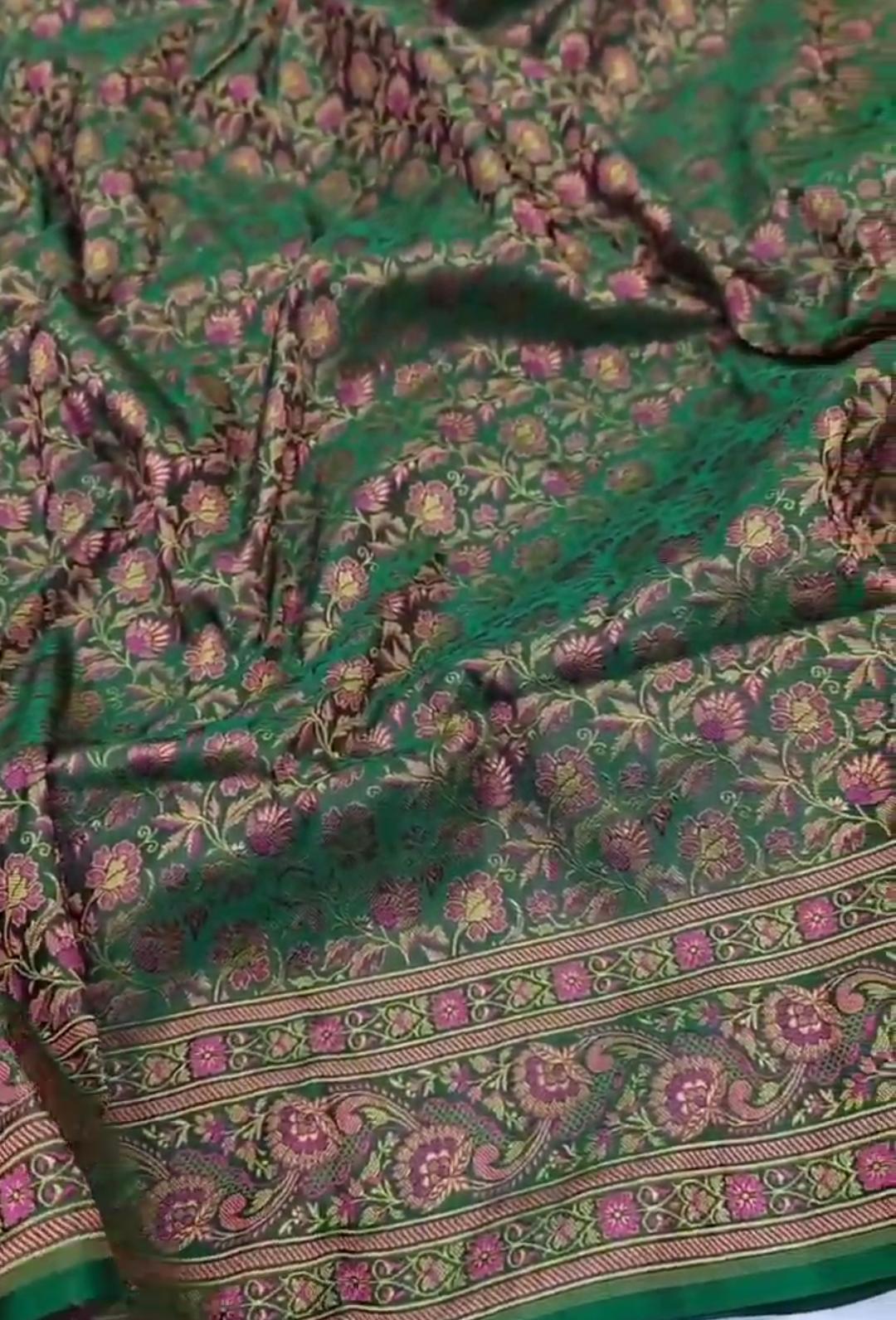 Green Banarasi Semi Katan Silk Tanchoi Brocade Saree