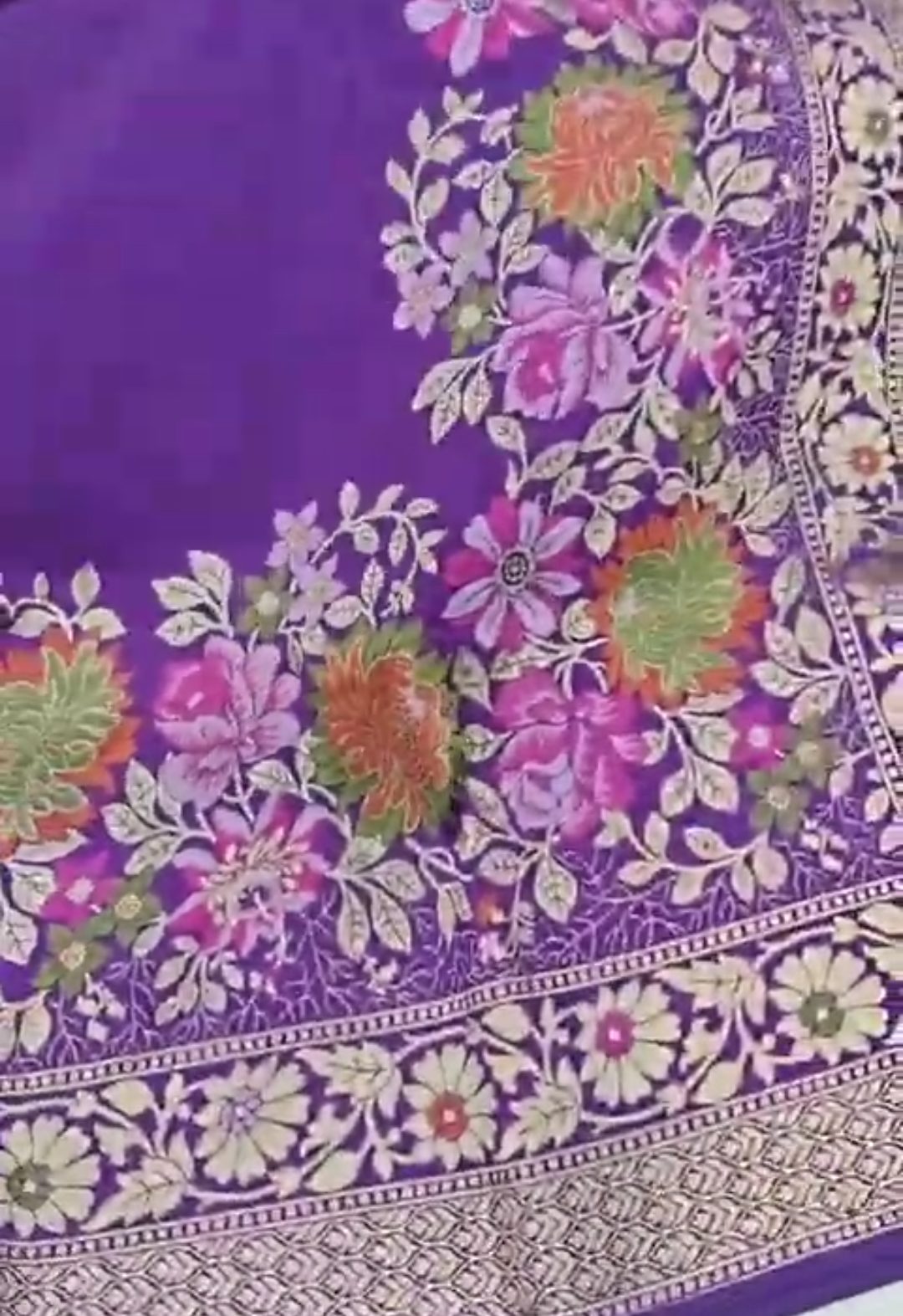 Lilac Banarasi Semi Katan Silk Tilfi Meenakari Saree