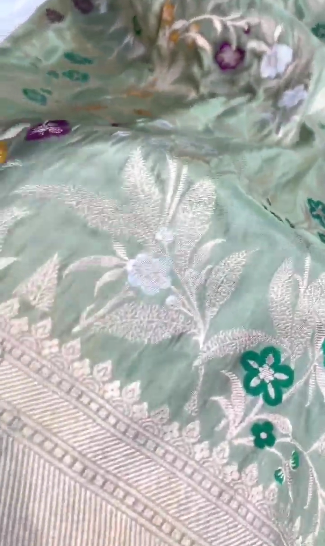 Pastel Green Banarasi Handloom Katan Silk Shikargah Meenakari Saree