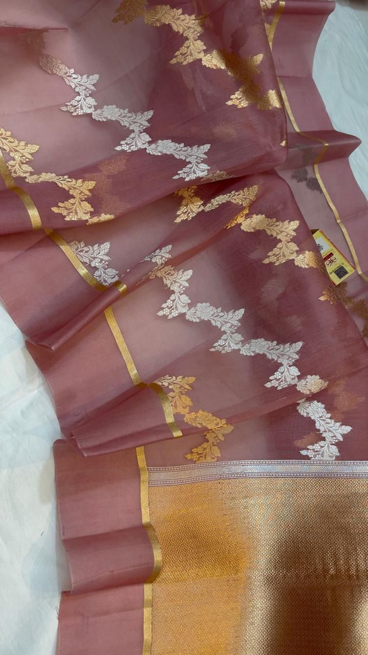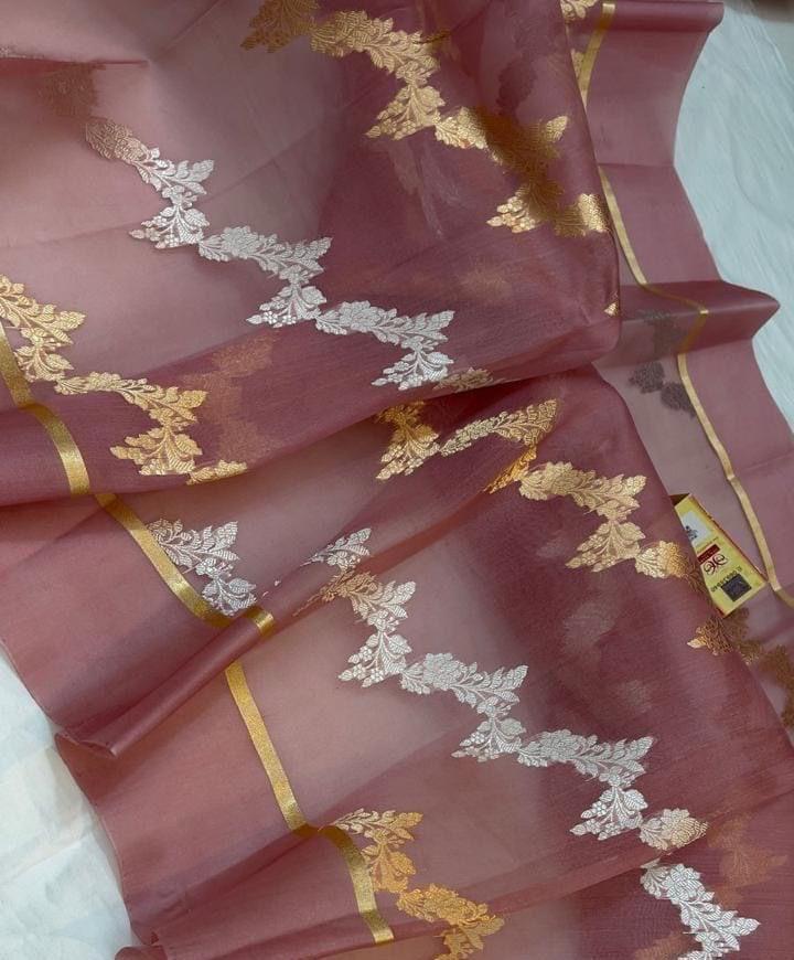 Rose Banarasi Handloom Kora Organza Silk Saree