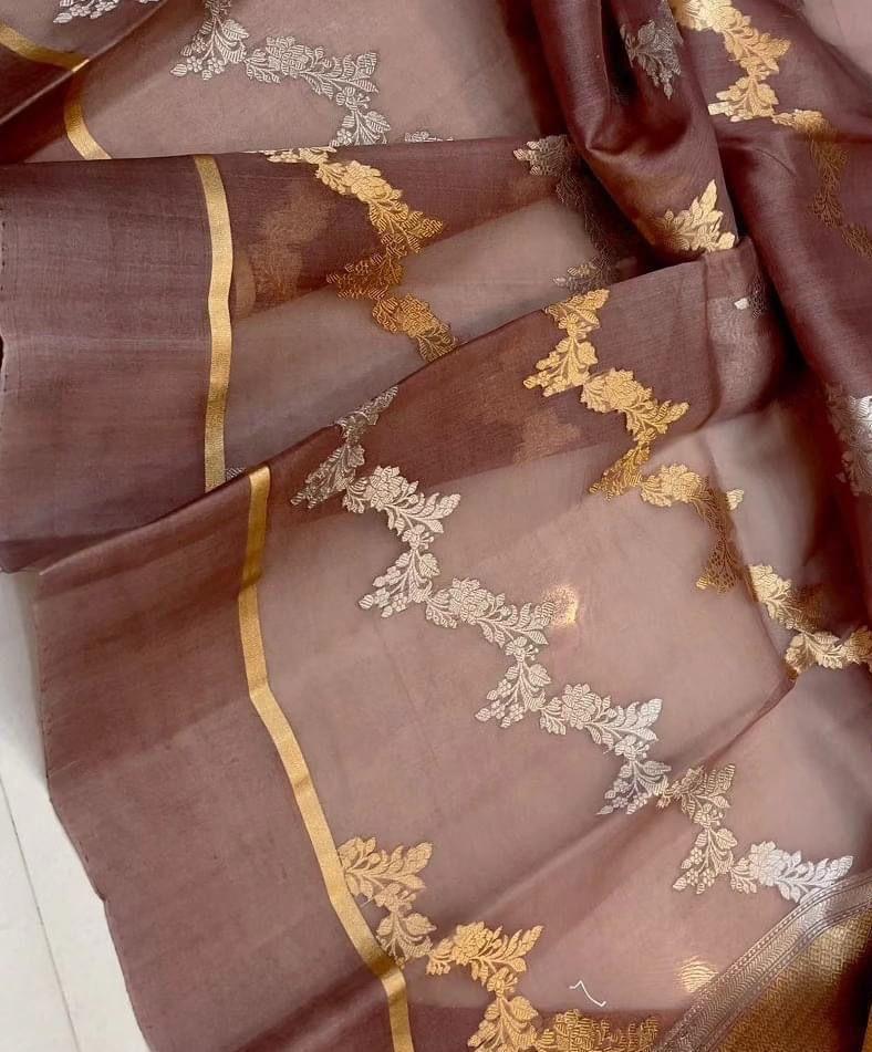 Banarasi Handloom Kora Silk Saree, Banarasi Handloom Pure Kora Organza Silk Saree