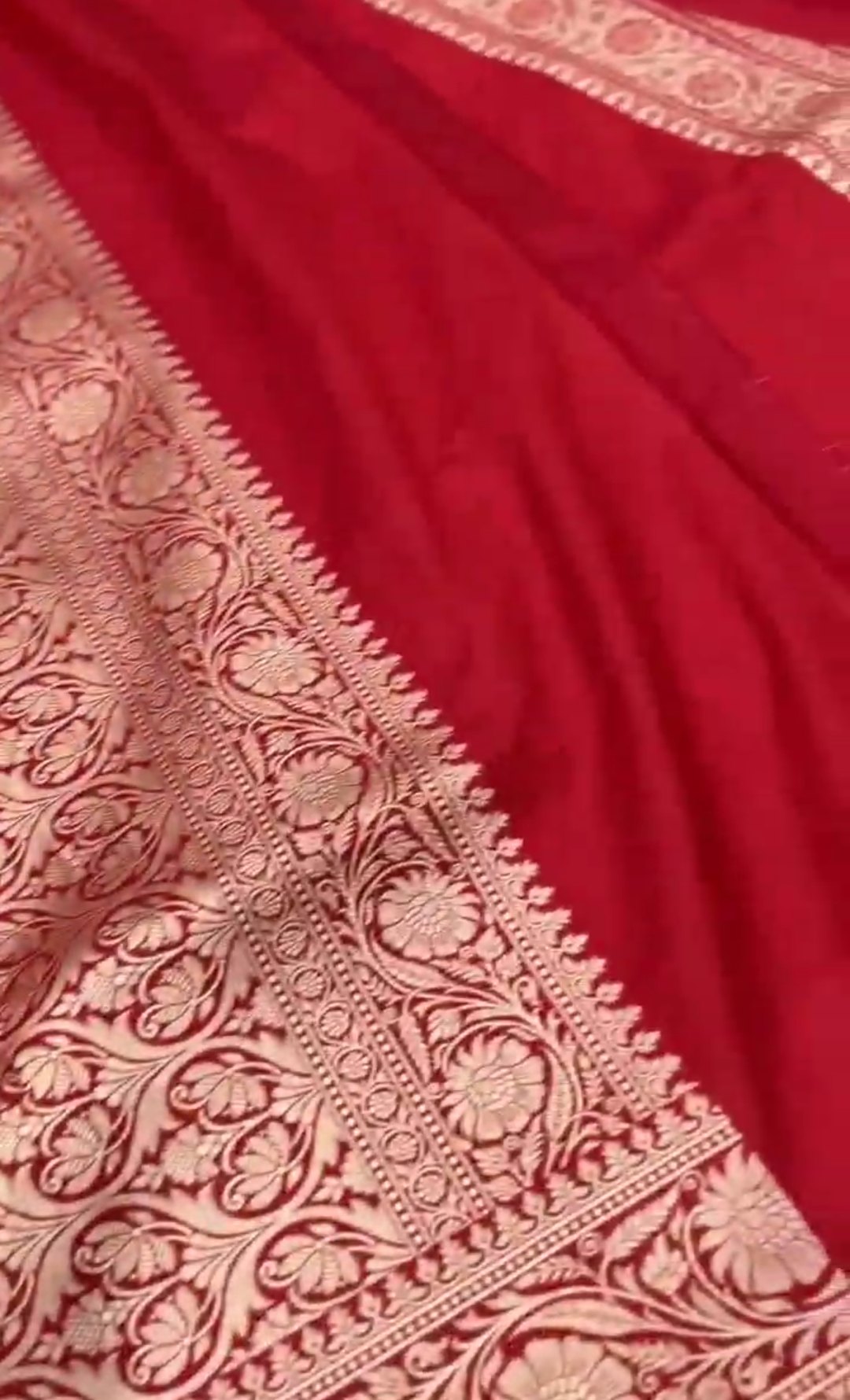 Red Banarasi Handloom Katan Silk Chand Tara Bridal Saree