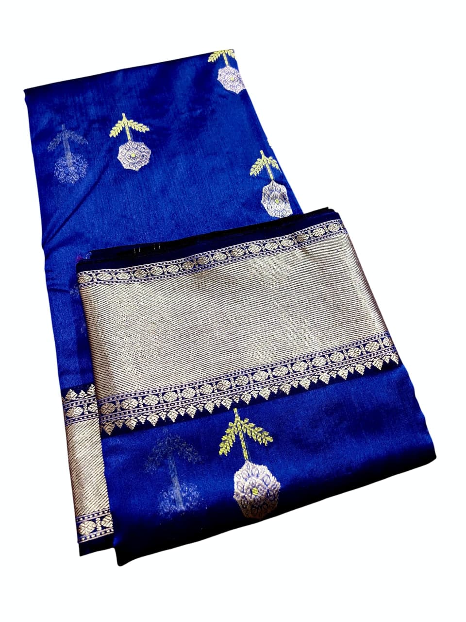 Azure Blue Chanderi Handloom Pattu Silk Meenakari Nakshi Saree