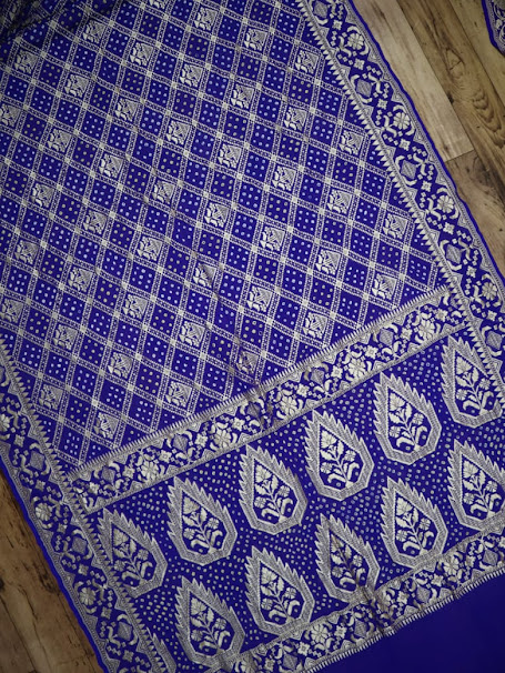 Blue Banarasi Handloom Gold Zari Bandhani Georgette Silk Saree