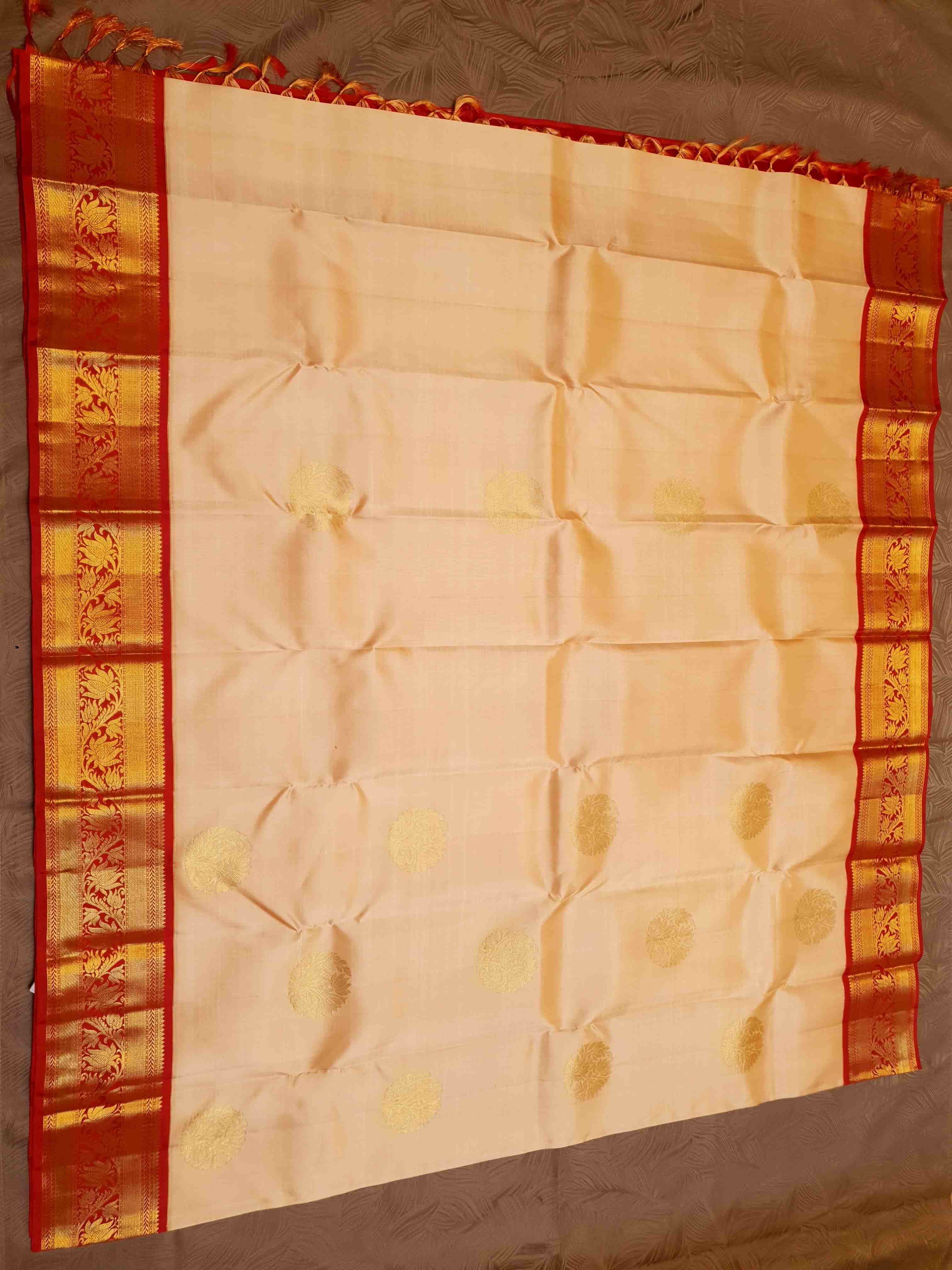 Cream Kanchipuram Handloom 2G Gold Pattu Silk Saree