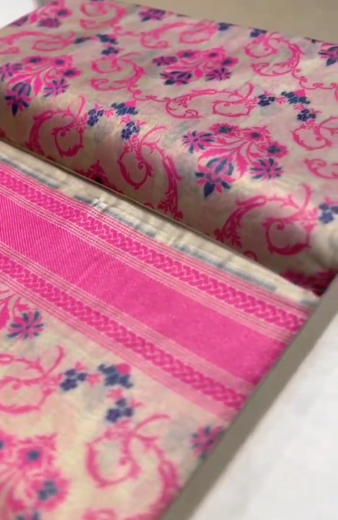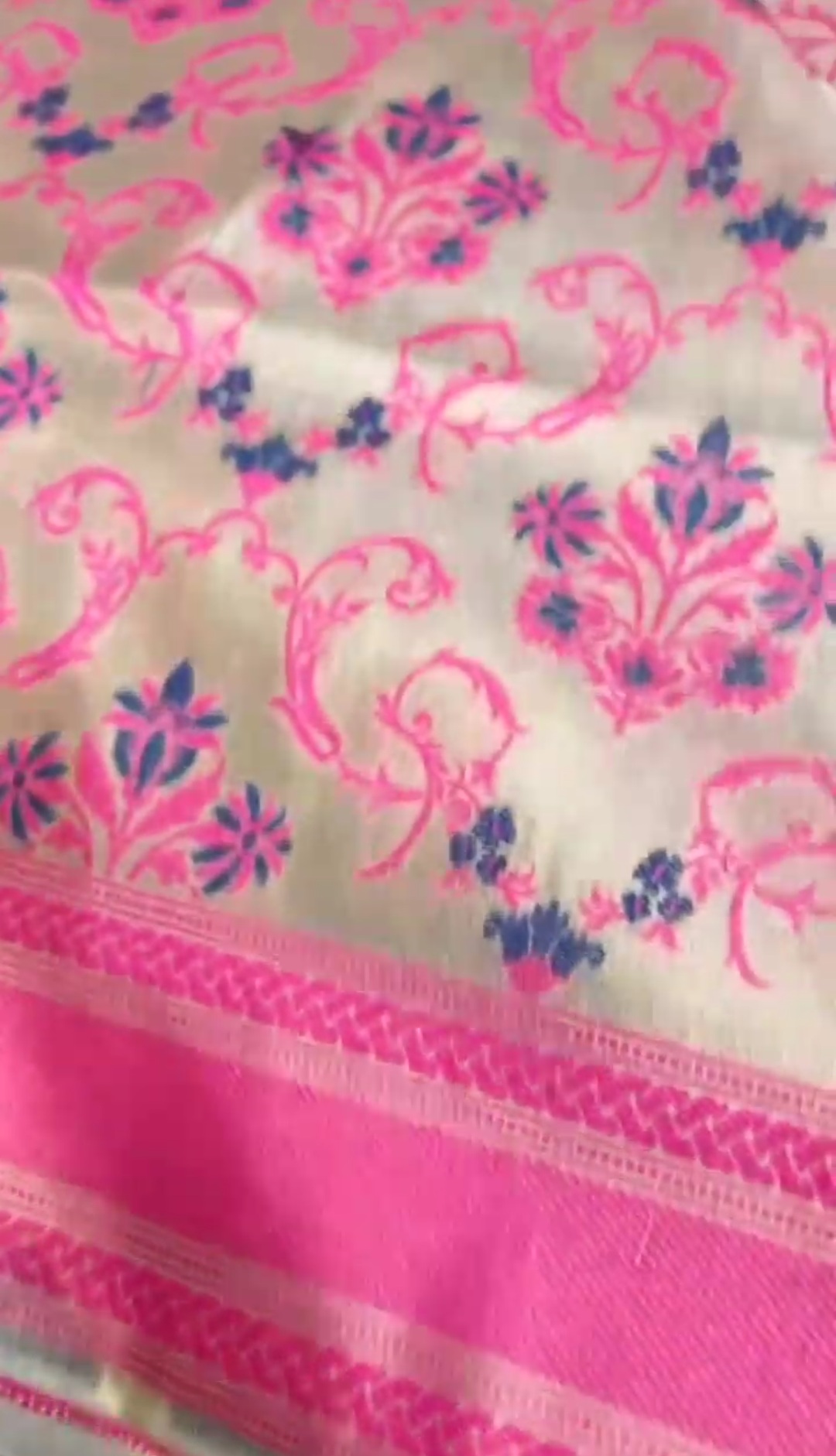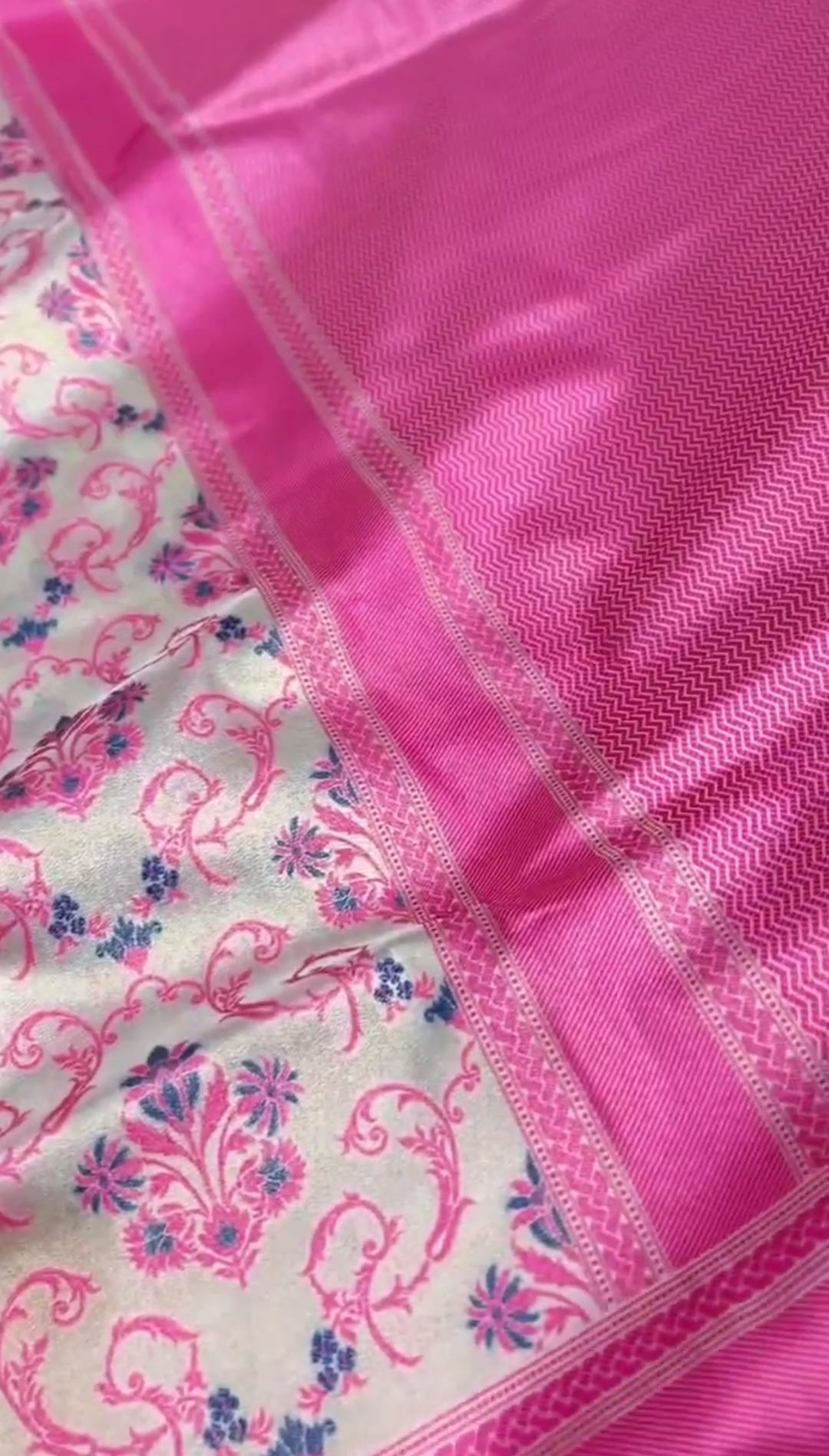Cream Banarasi Soft Tissue Silk Meenakari Saree