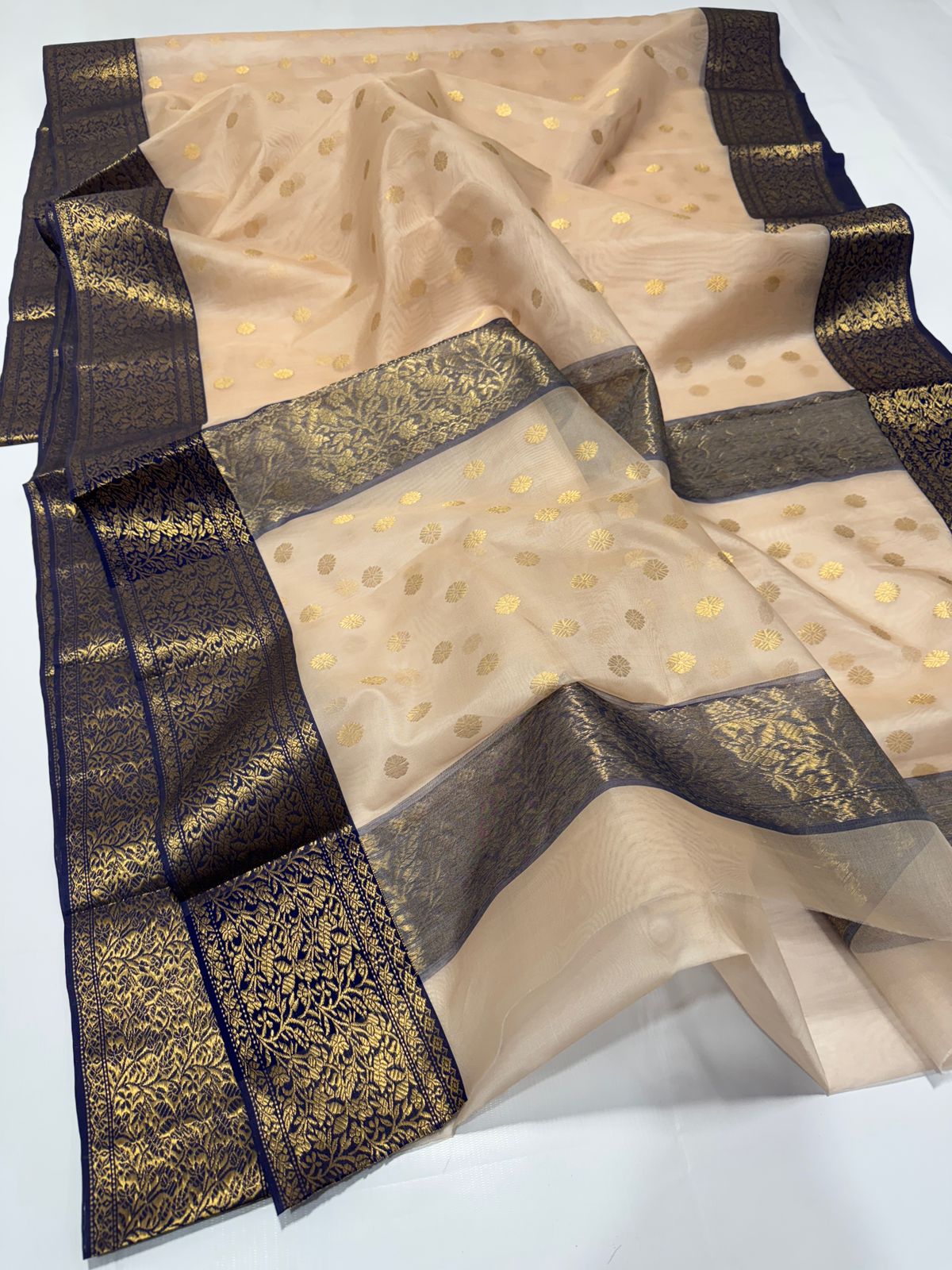 Beige Chanderi Handloom Katan Silk Nakshi Saree