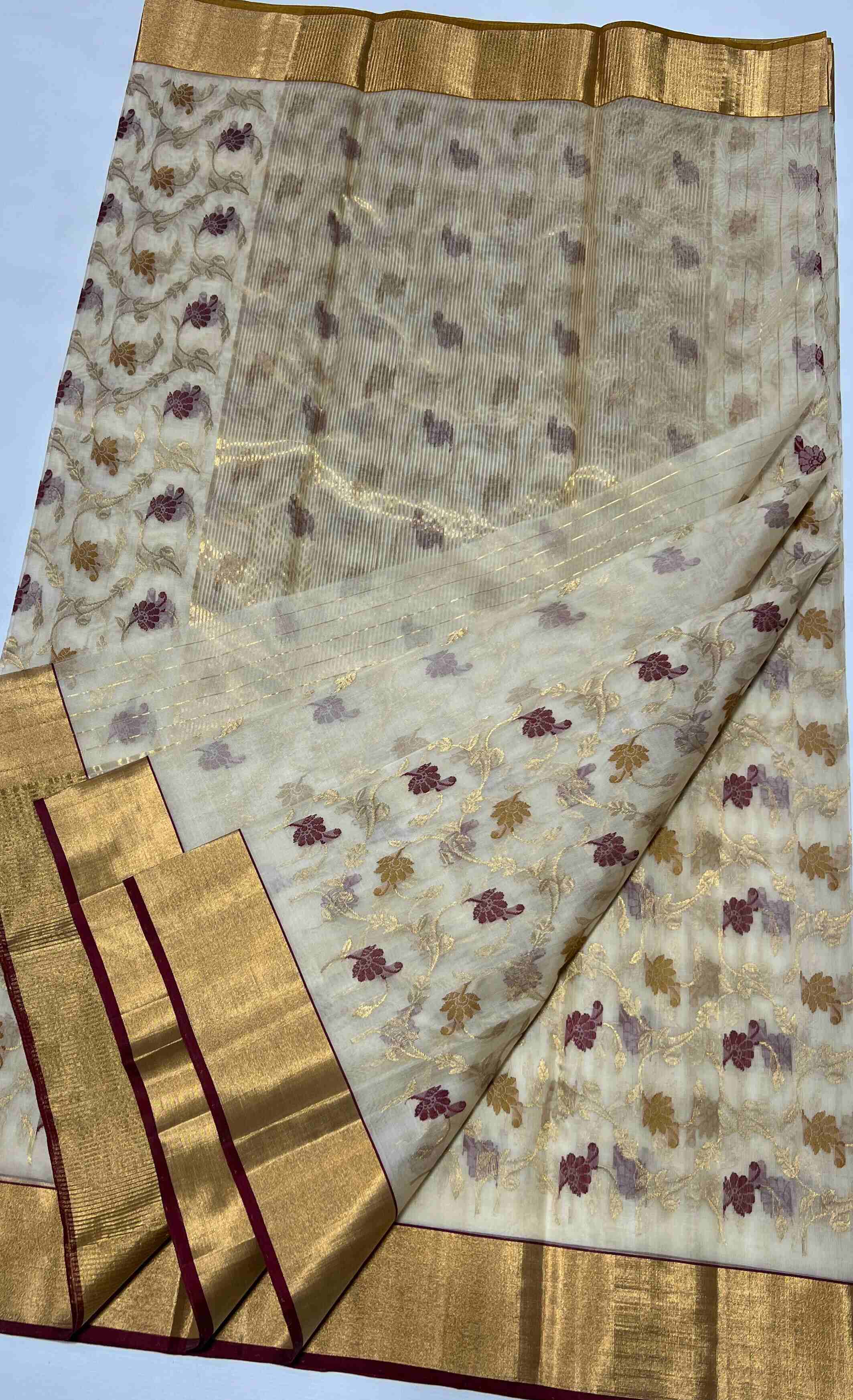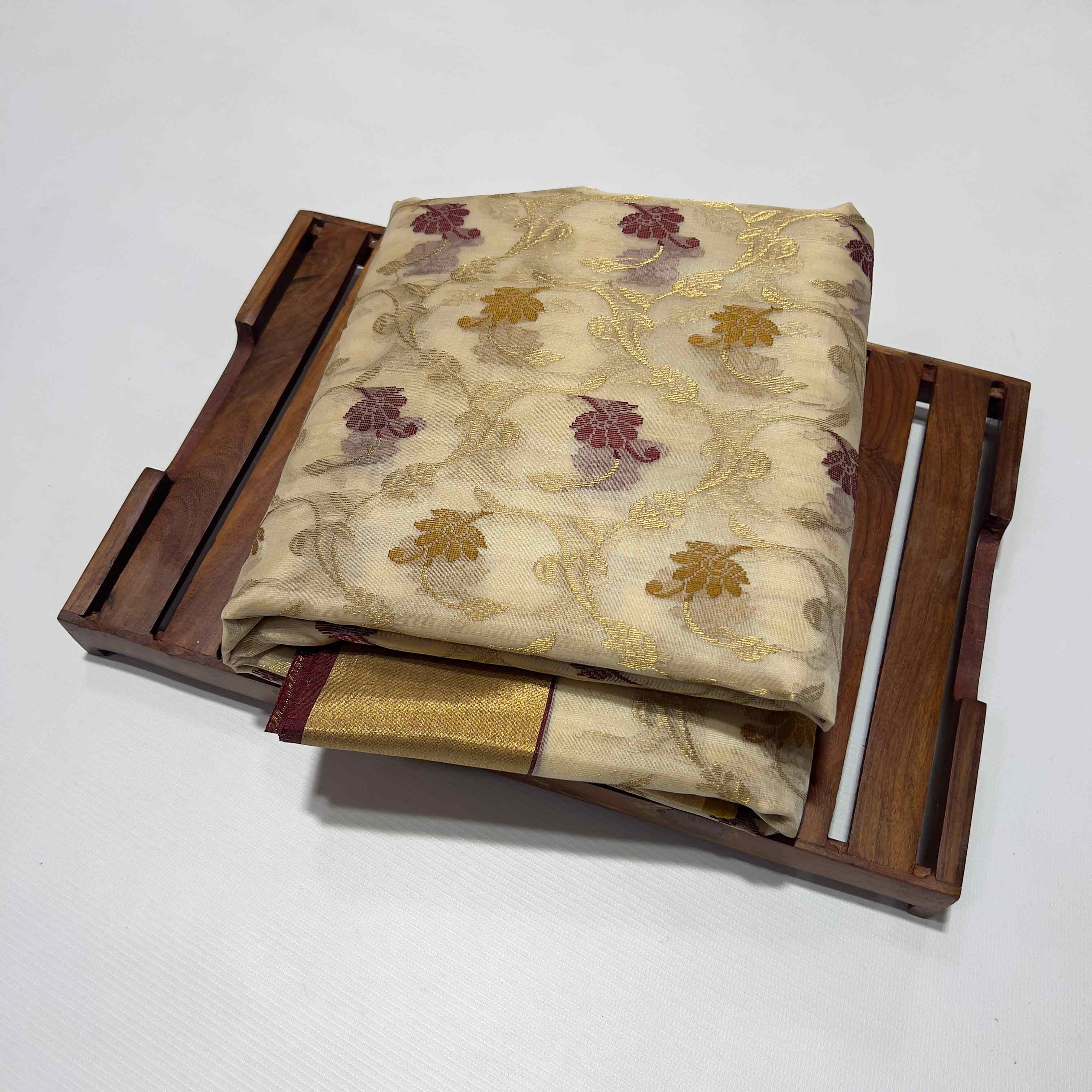 Beige Chanderi Handloom Katan Silk Saree