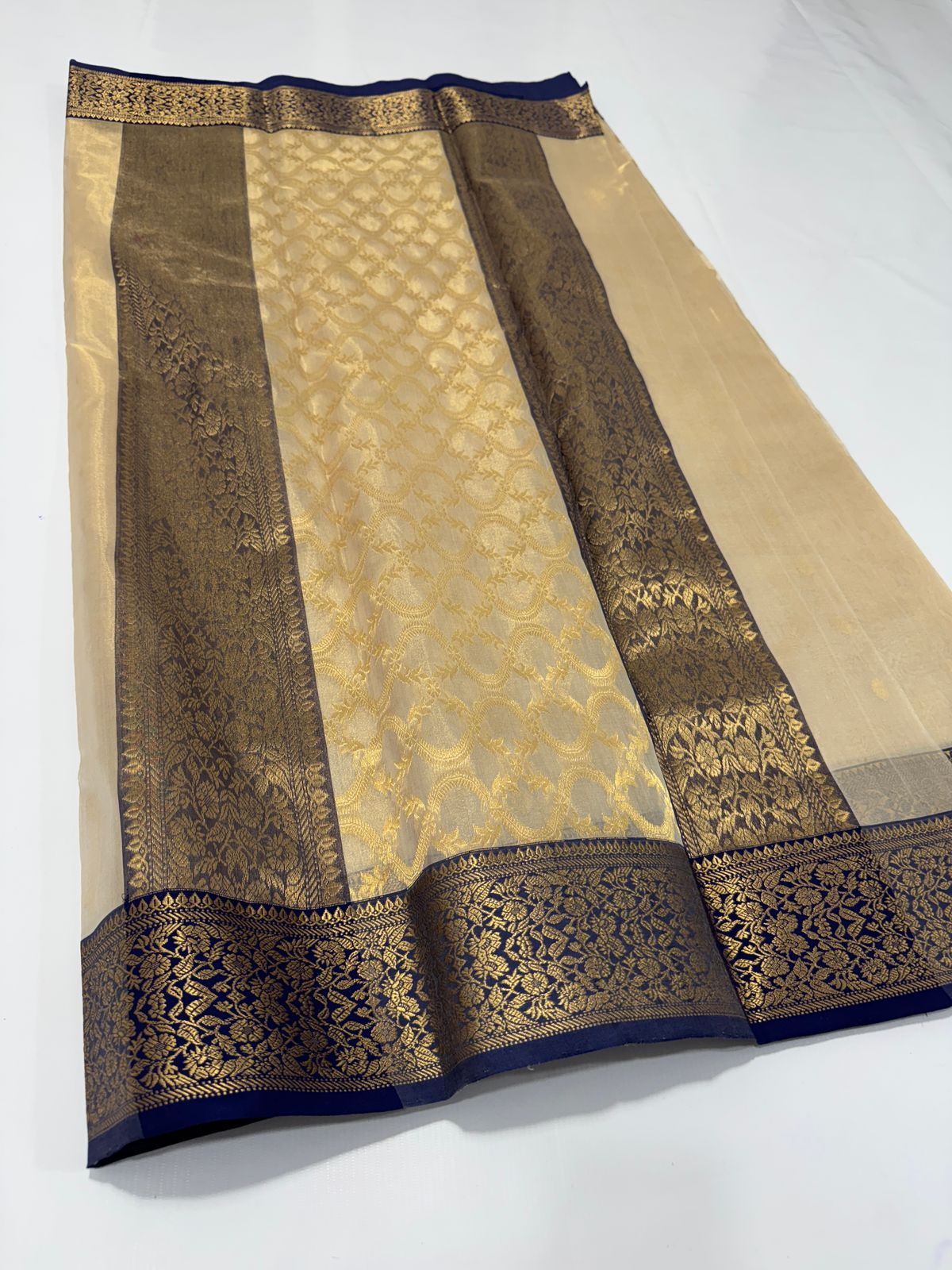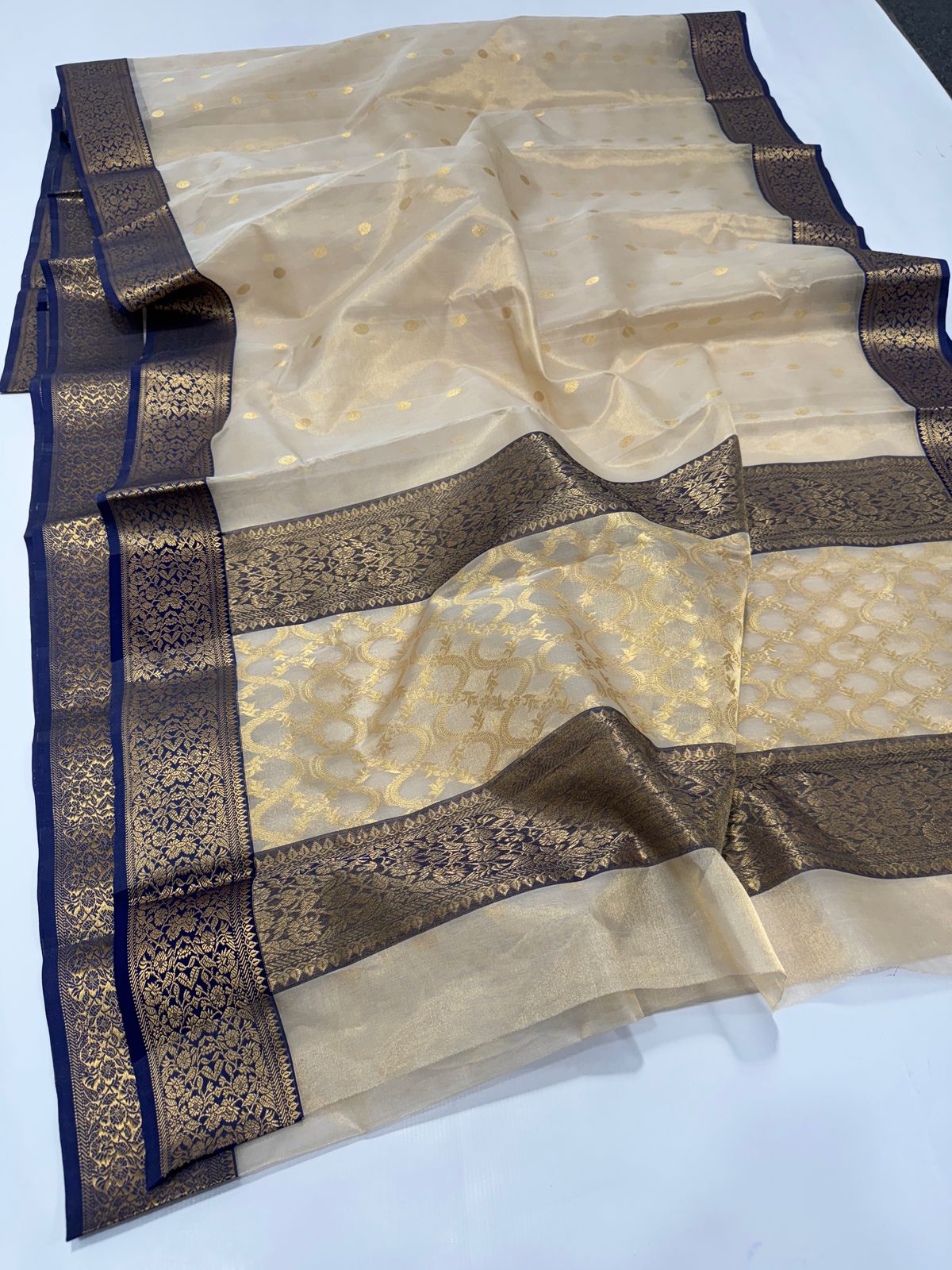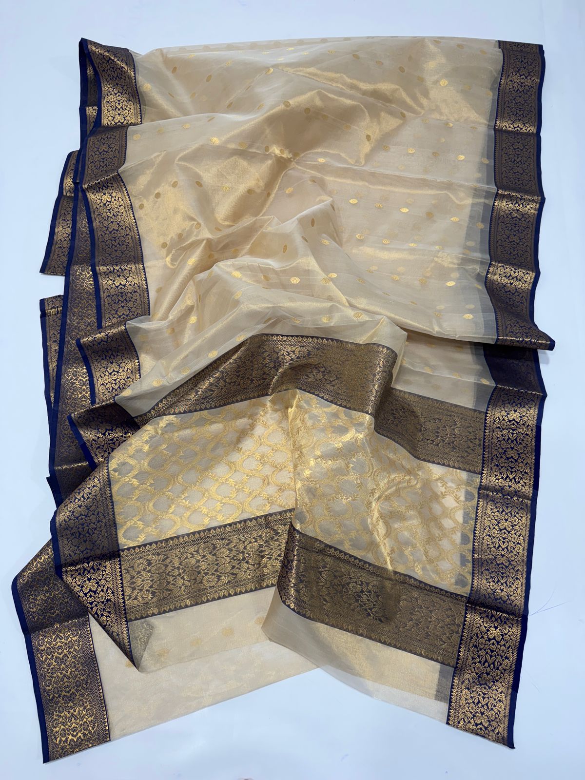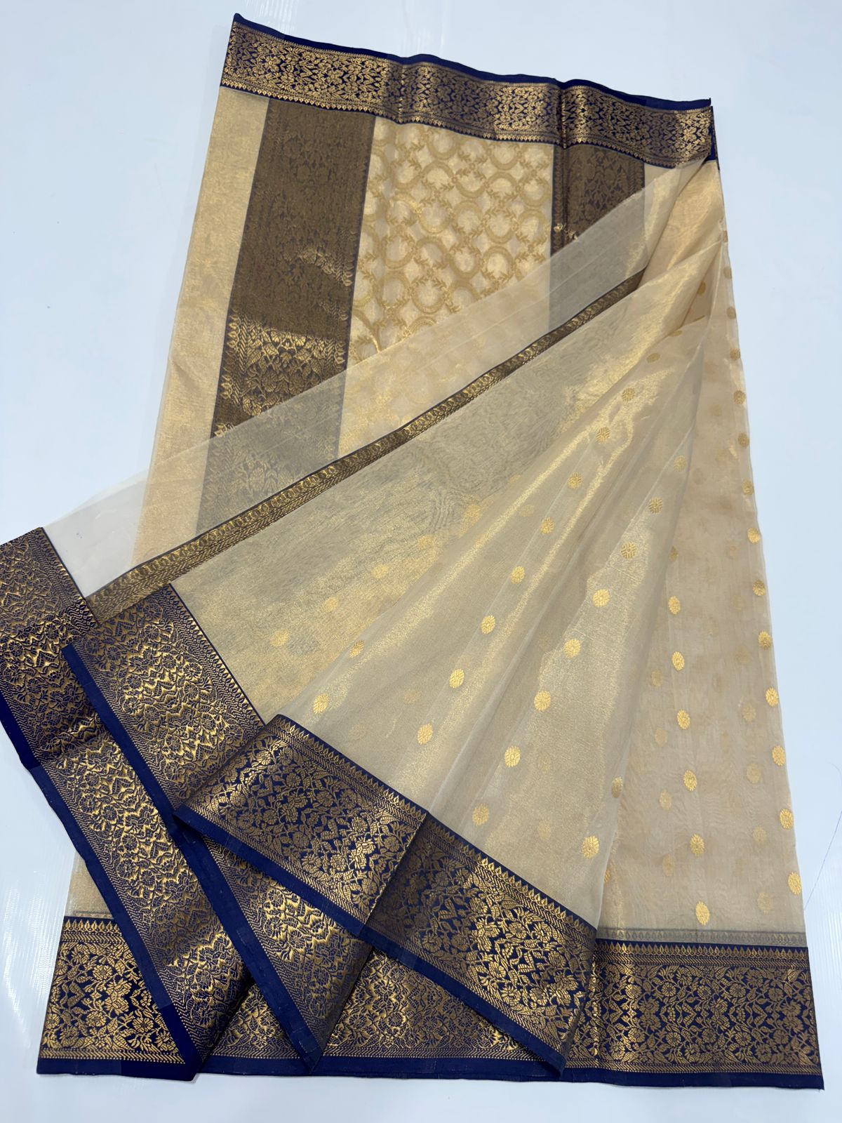 Beige Chanderi Handloom Katan Tissue Silk Saree