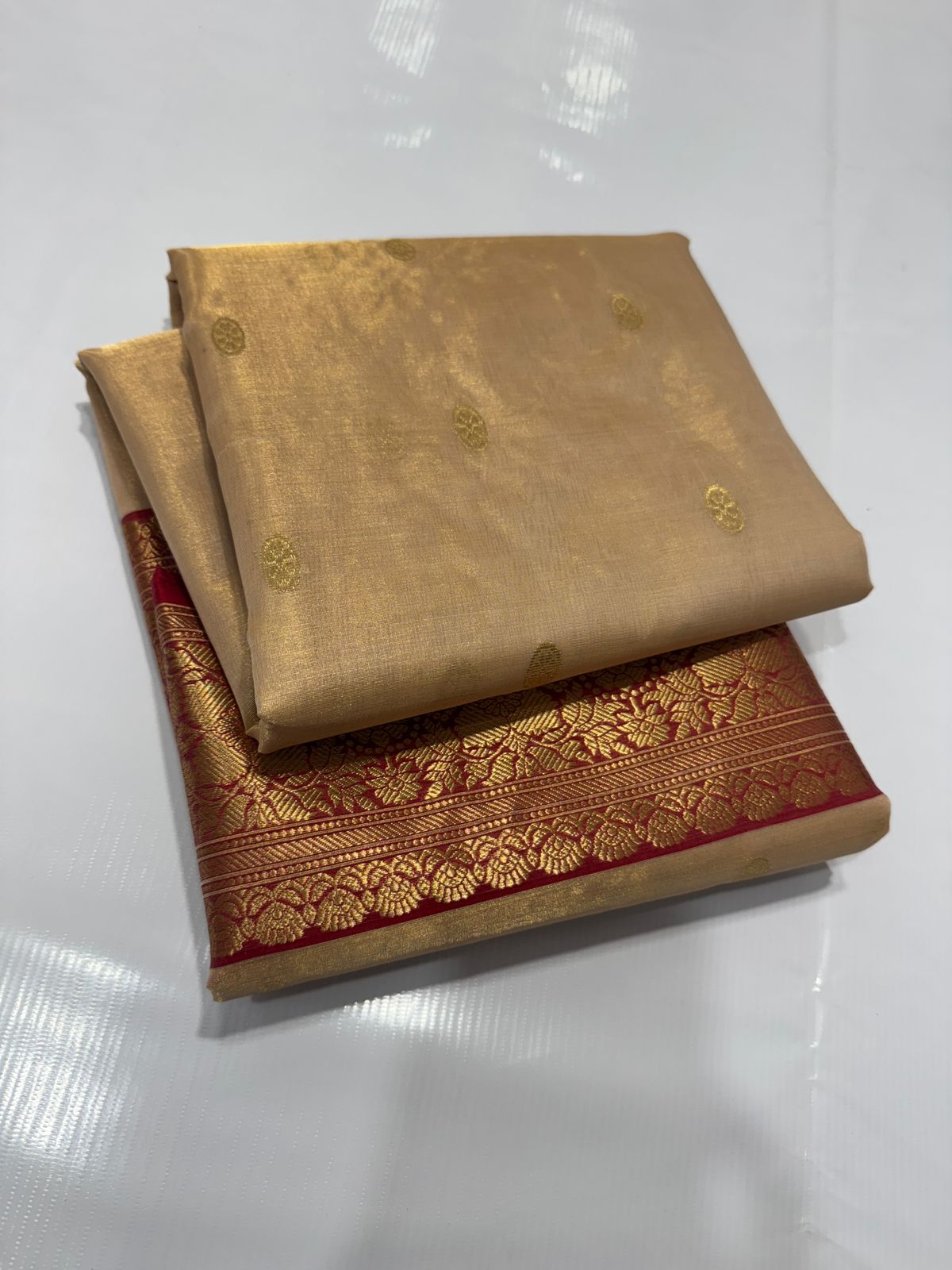 Gold Chanderi Handloom Katan Tissue Silk Saree