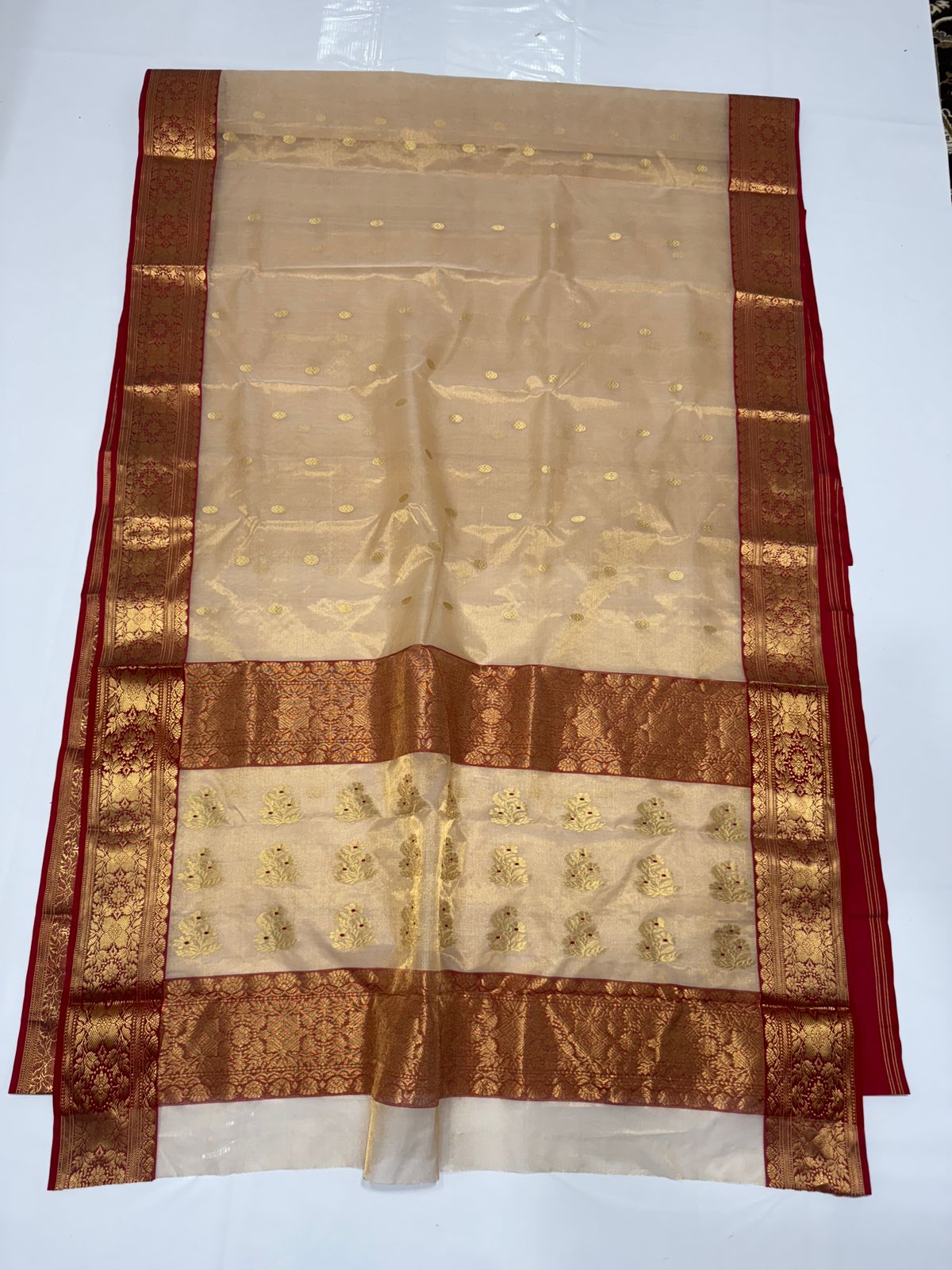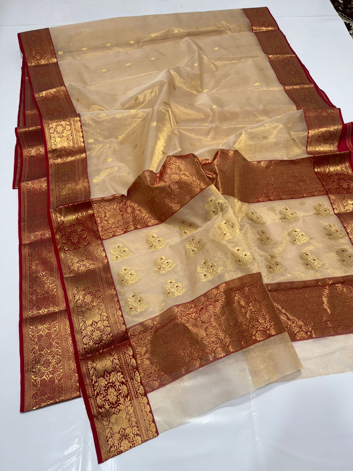 Beige Chanderi Handloom Katan Tissue Silk Saree
