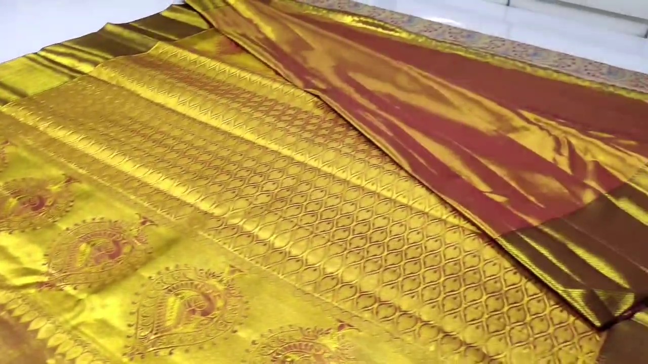 Yellow Kanchipuram Handloom Tissue Brocade Meenakari Silk Saree