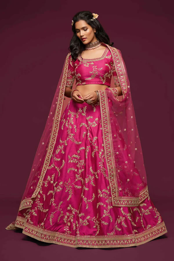 Berry Pink Silk Lehenga with Thread, Zari & Sequins Work