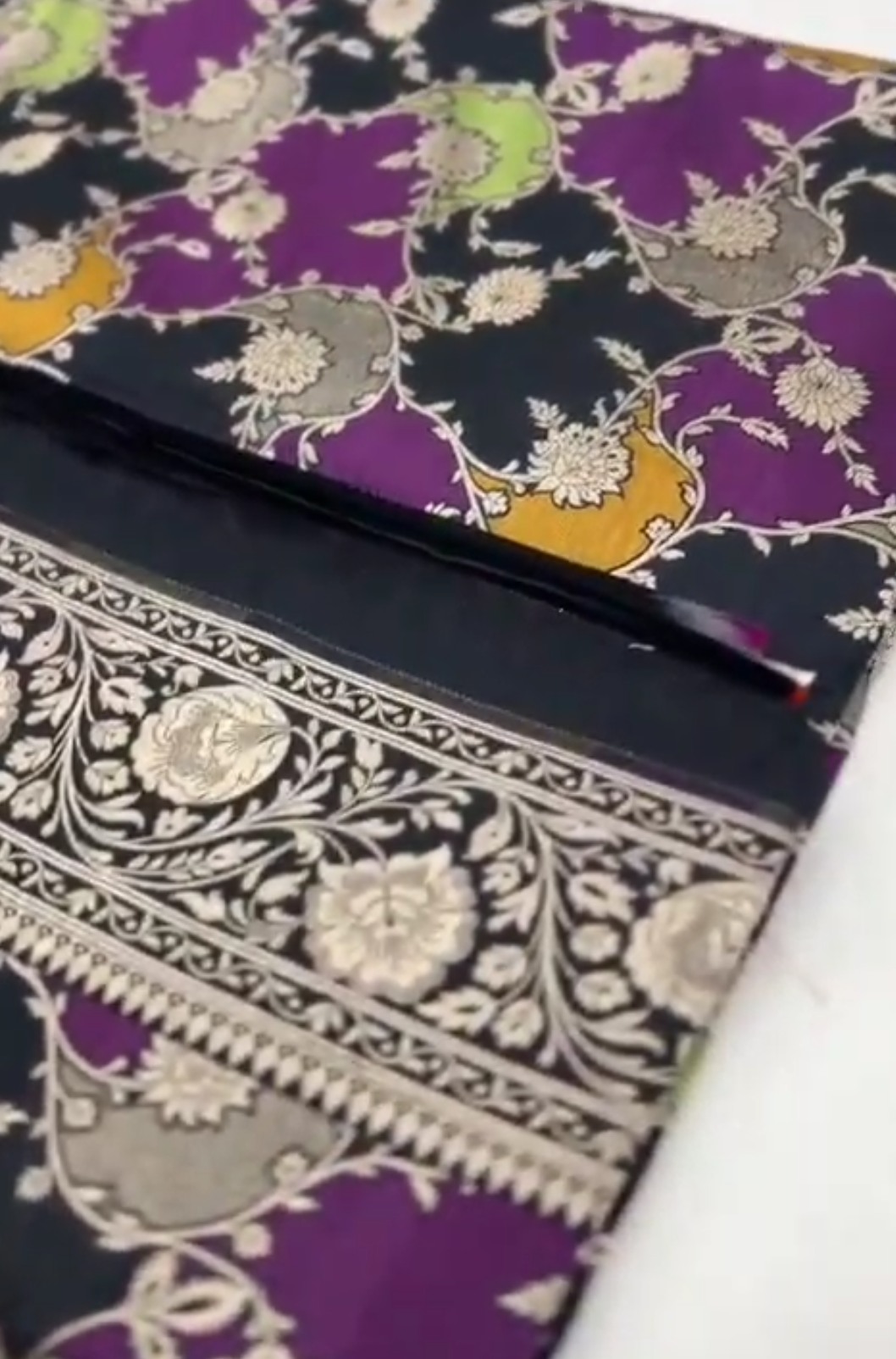 Black Banarasi Handloom Pure Katan Silk Meenakari Saree