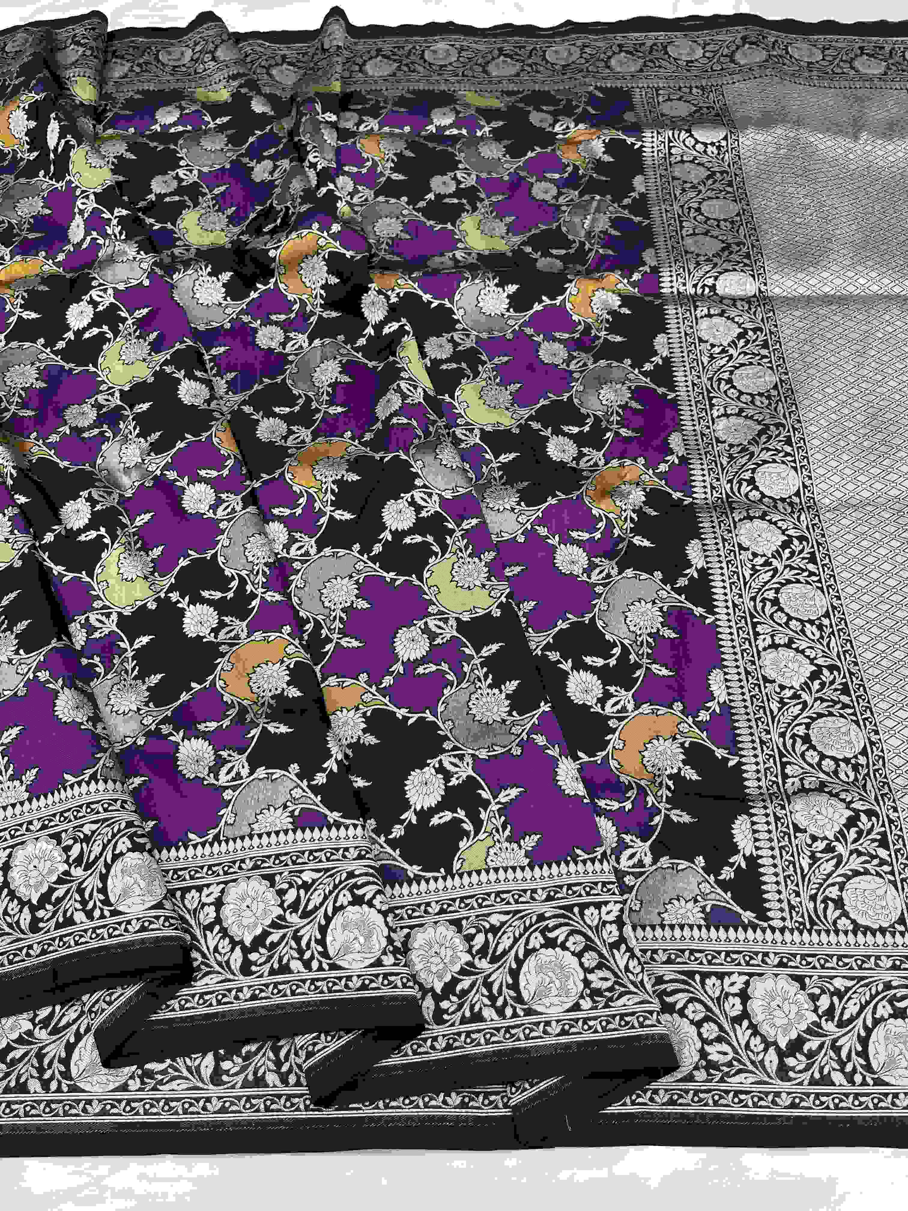 Black Banarasi Handloom Katan Silk Rangkaat Meenakari Saree