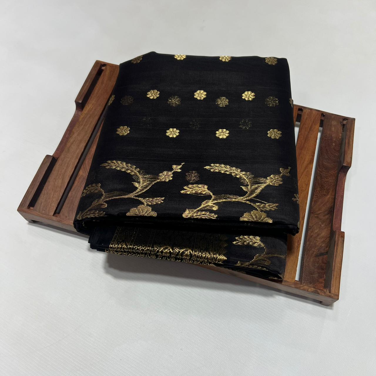 Black Chanderi Handloom Katan Silk Saree