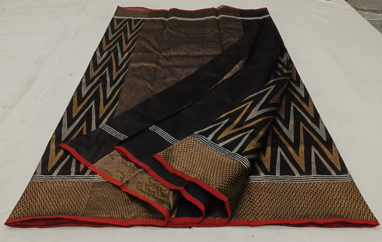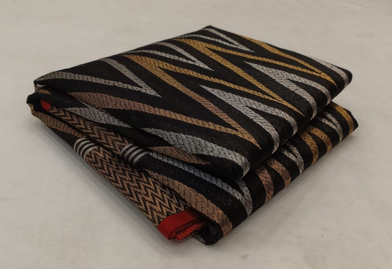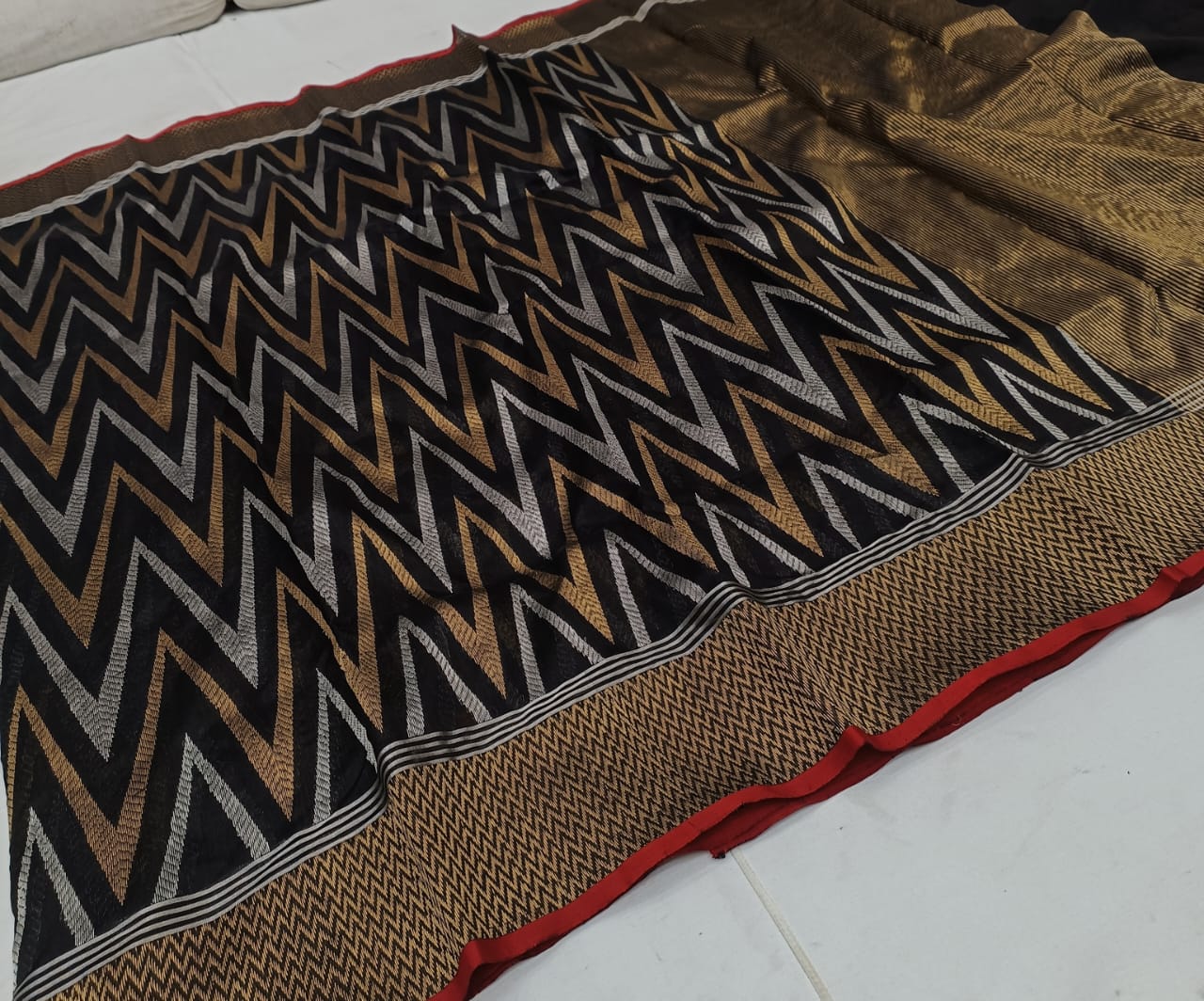 Black Chanderi Handloom Pattu Silk Handwork Saree