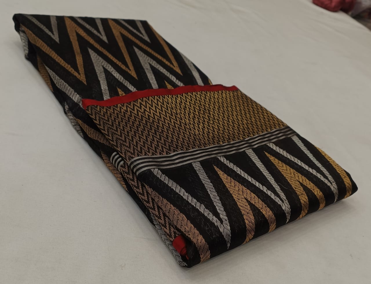 Zig Zag Stripes, Handwork Borders, Silver Zari, Gold Zari