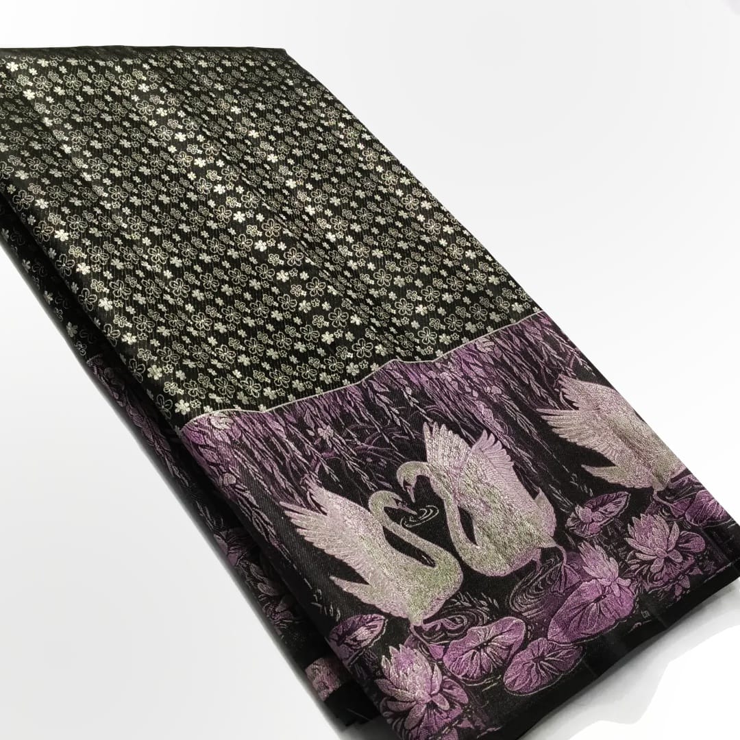 Black Kanchipuram Handloom 1G Gold Pattu Silk Meenakari Saree