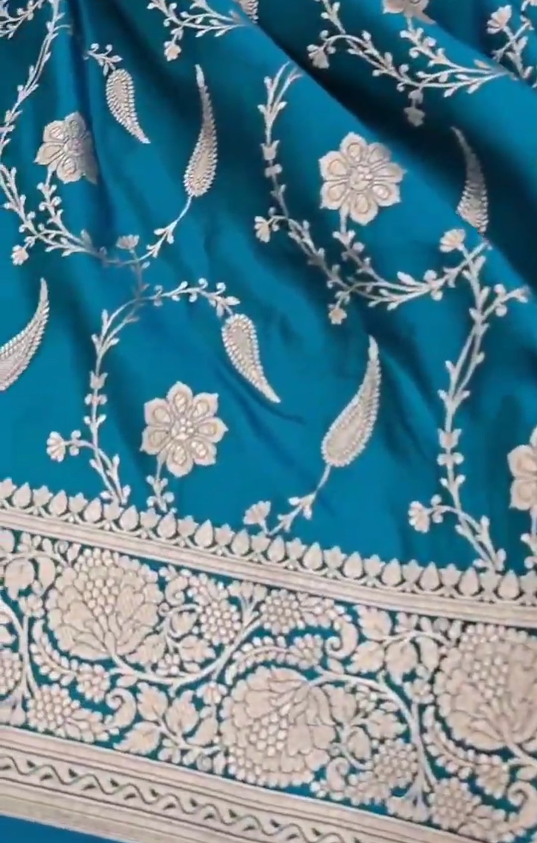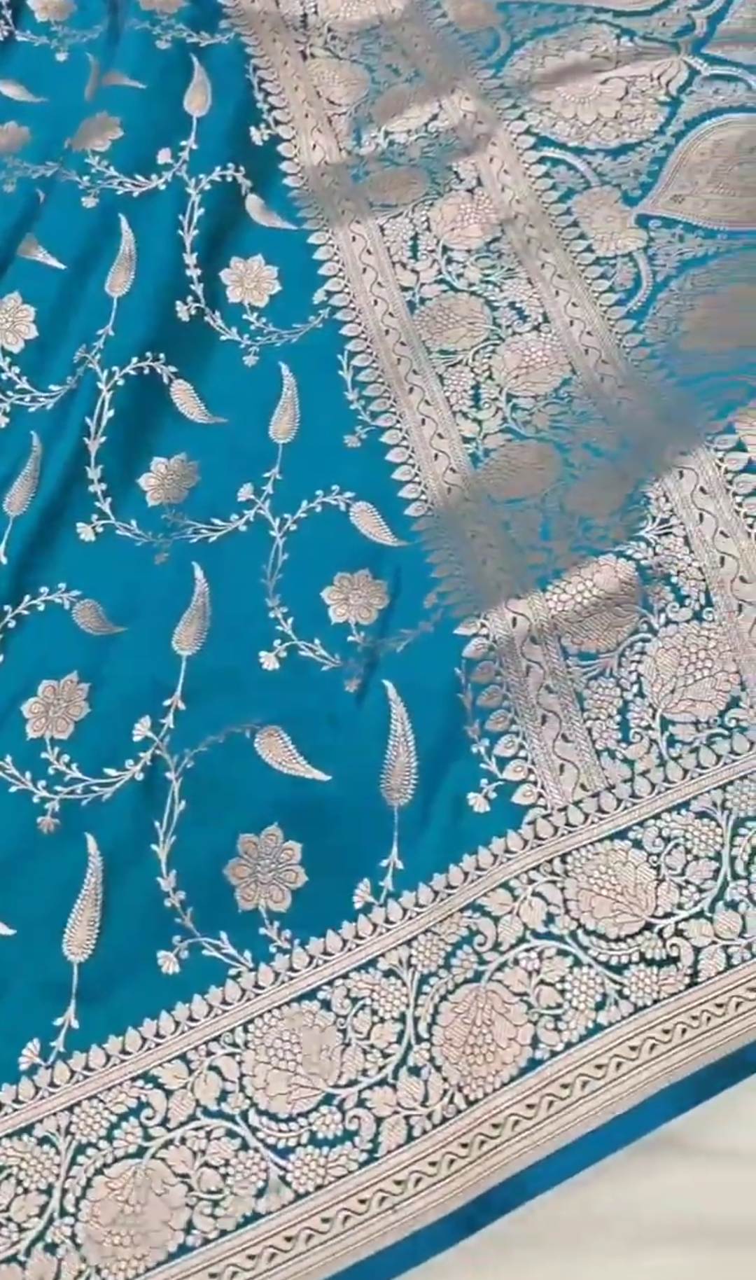 Deep Sky Blue Banarasi Mashru Soft Silk Saree