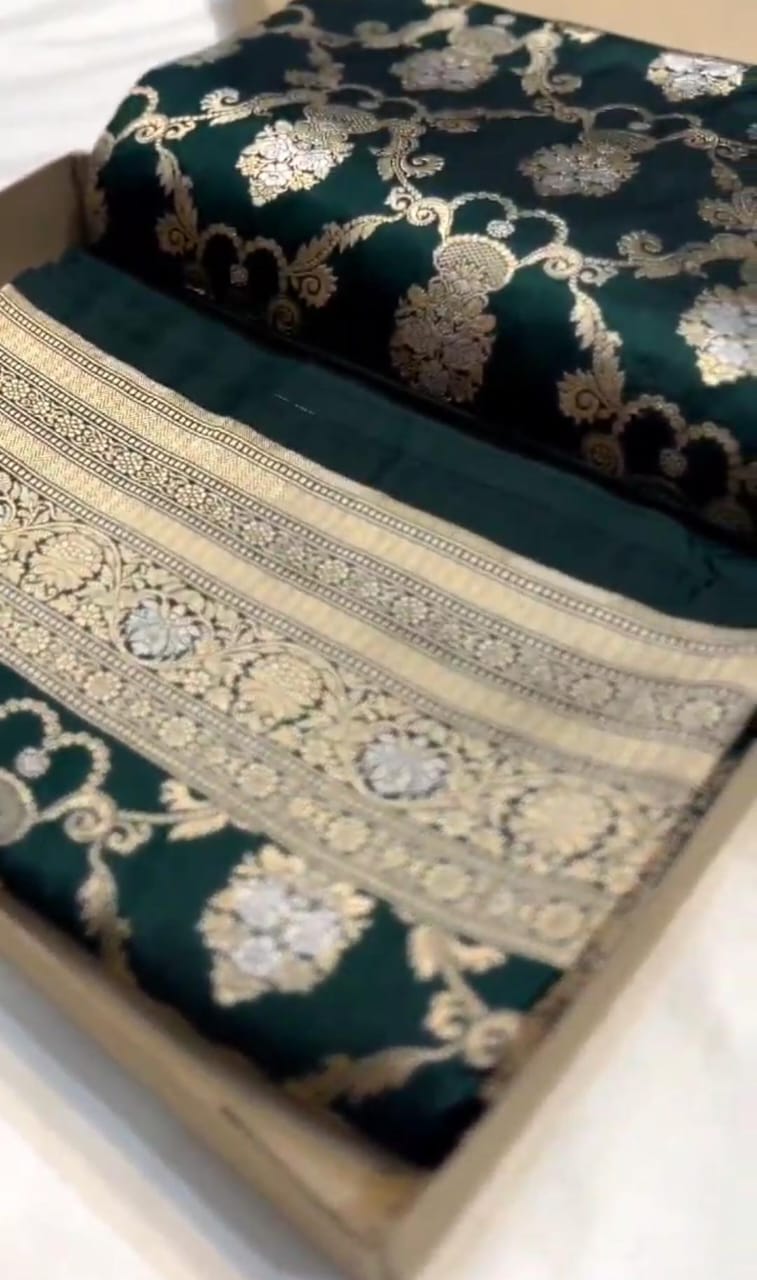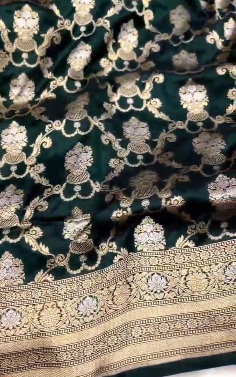Bottle Green Banarasi Handloom Katan Silk Sona Rupa Saree