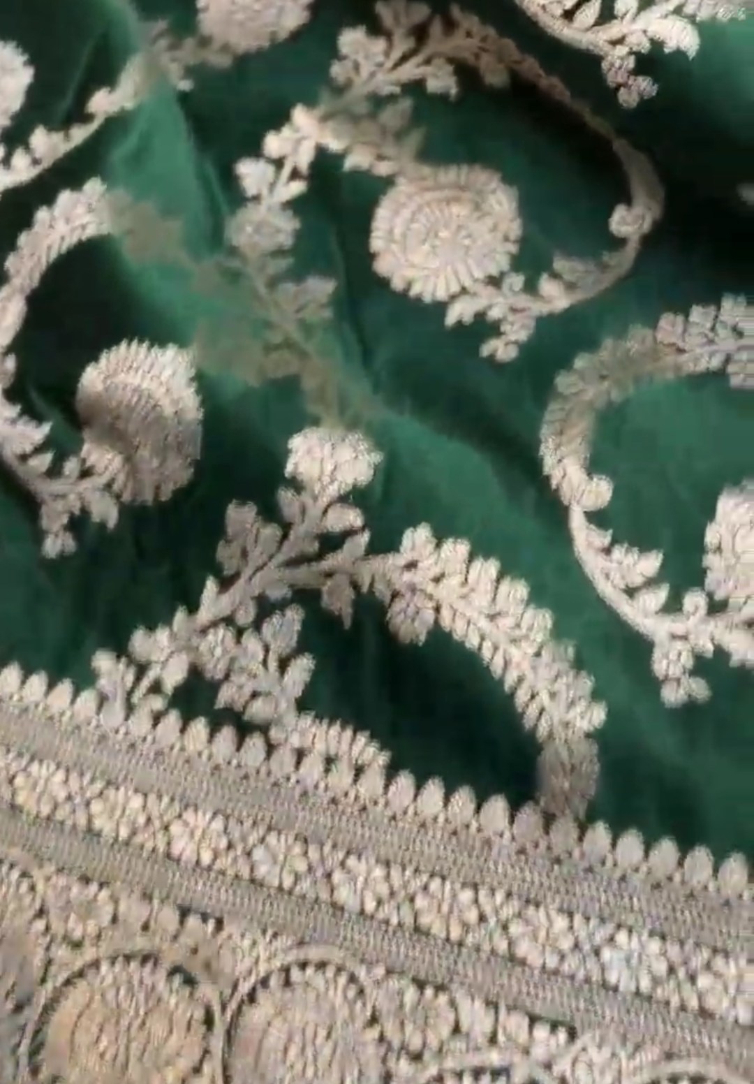 Bottle Green Banarasi Mashru Soft Silk Saree