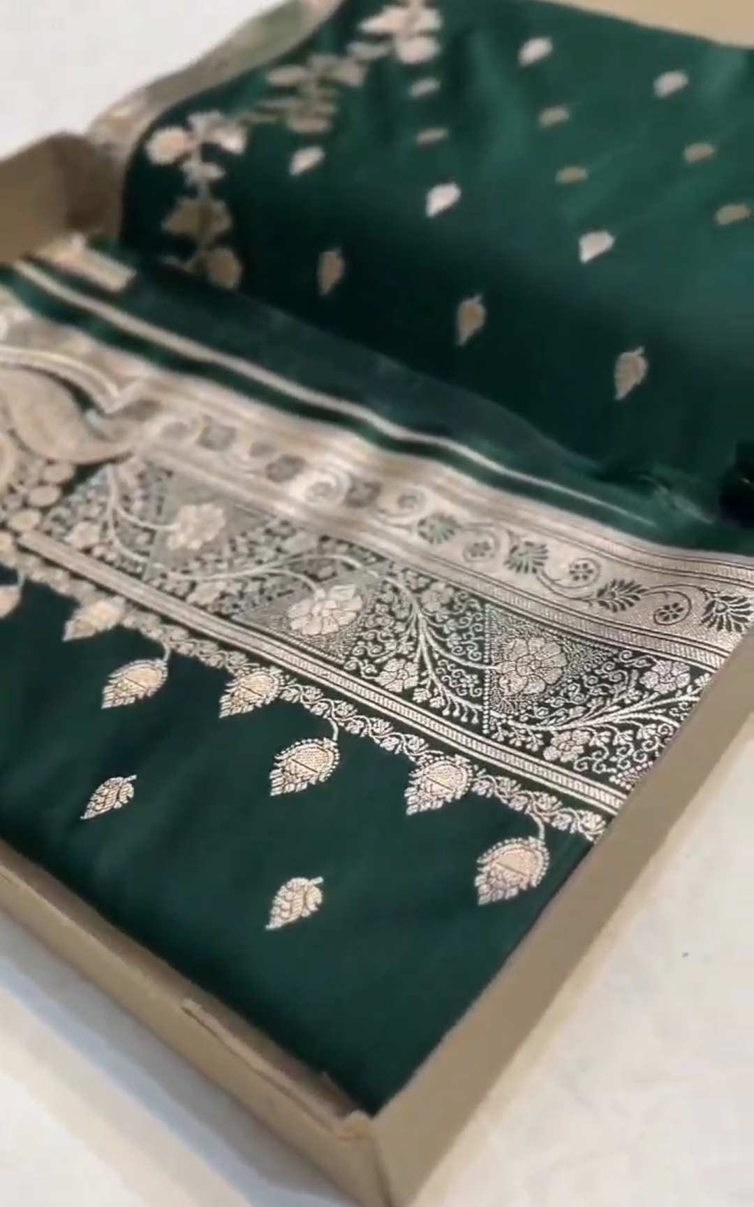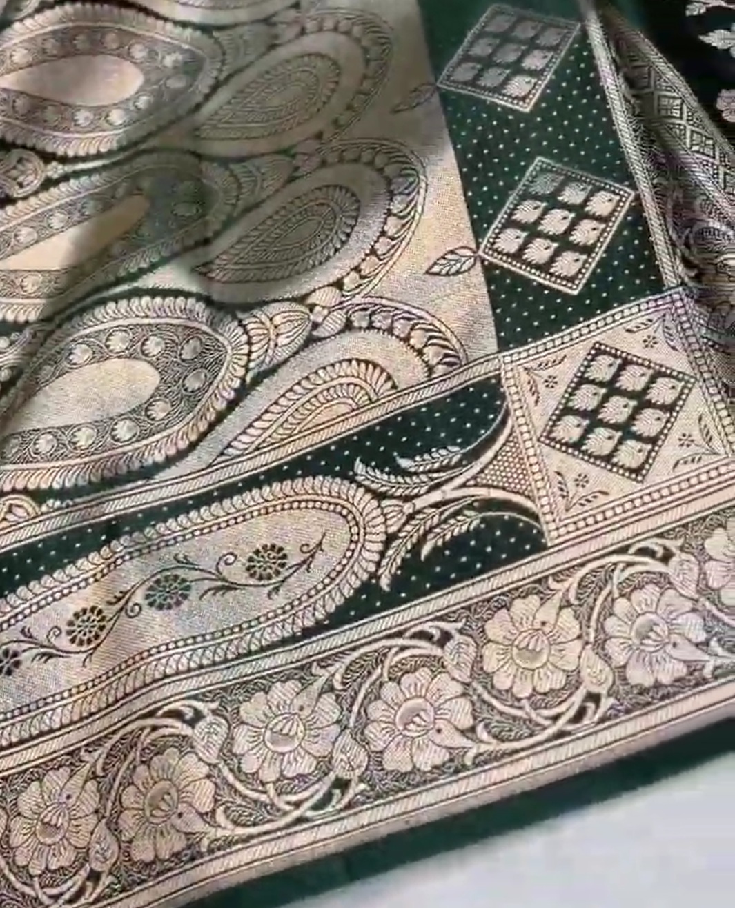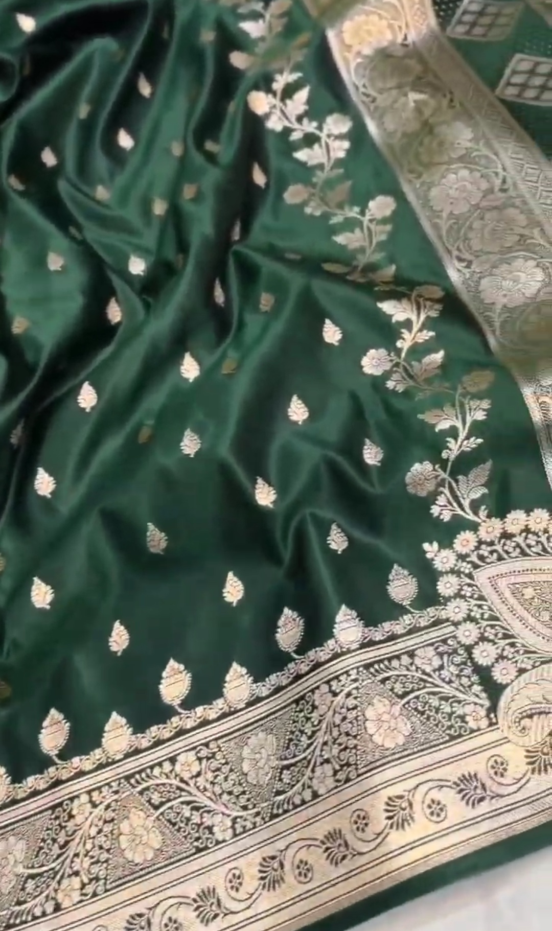 Bottle Green Banarasi Mashru Soft Silk Saree