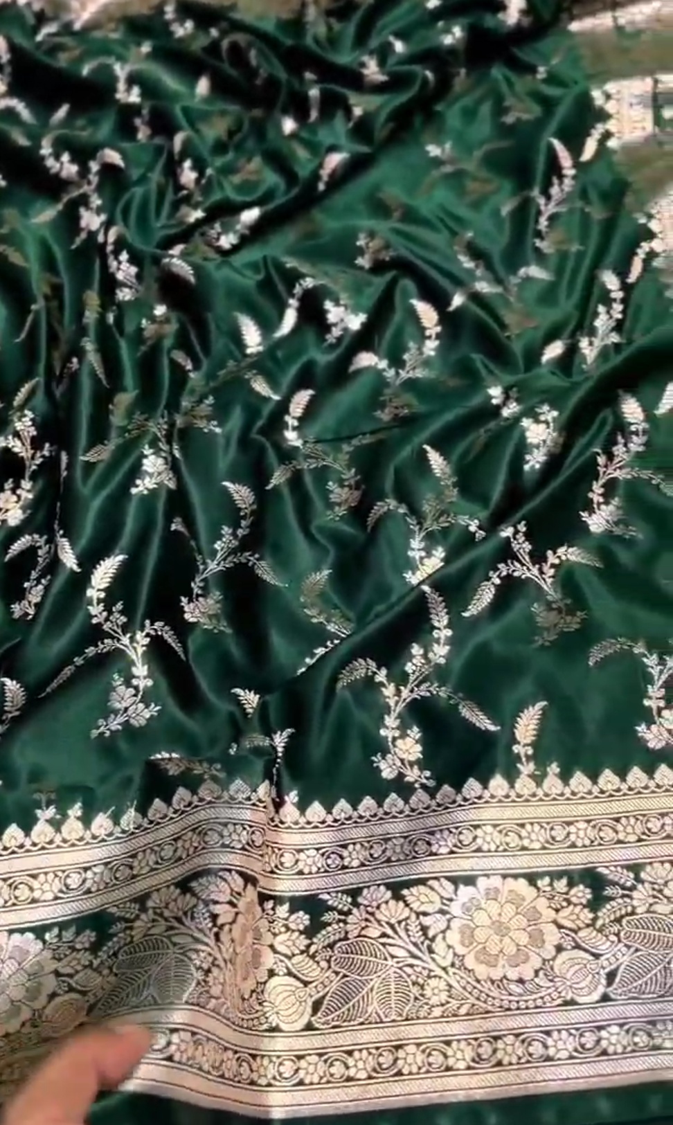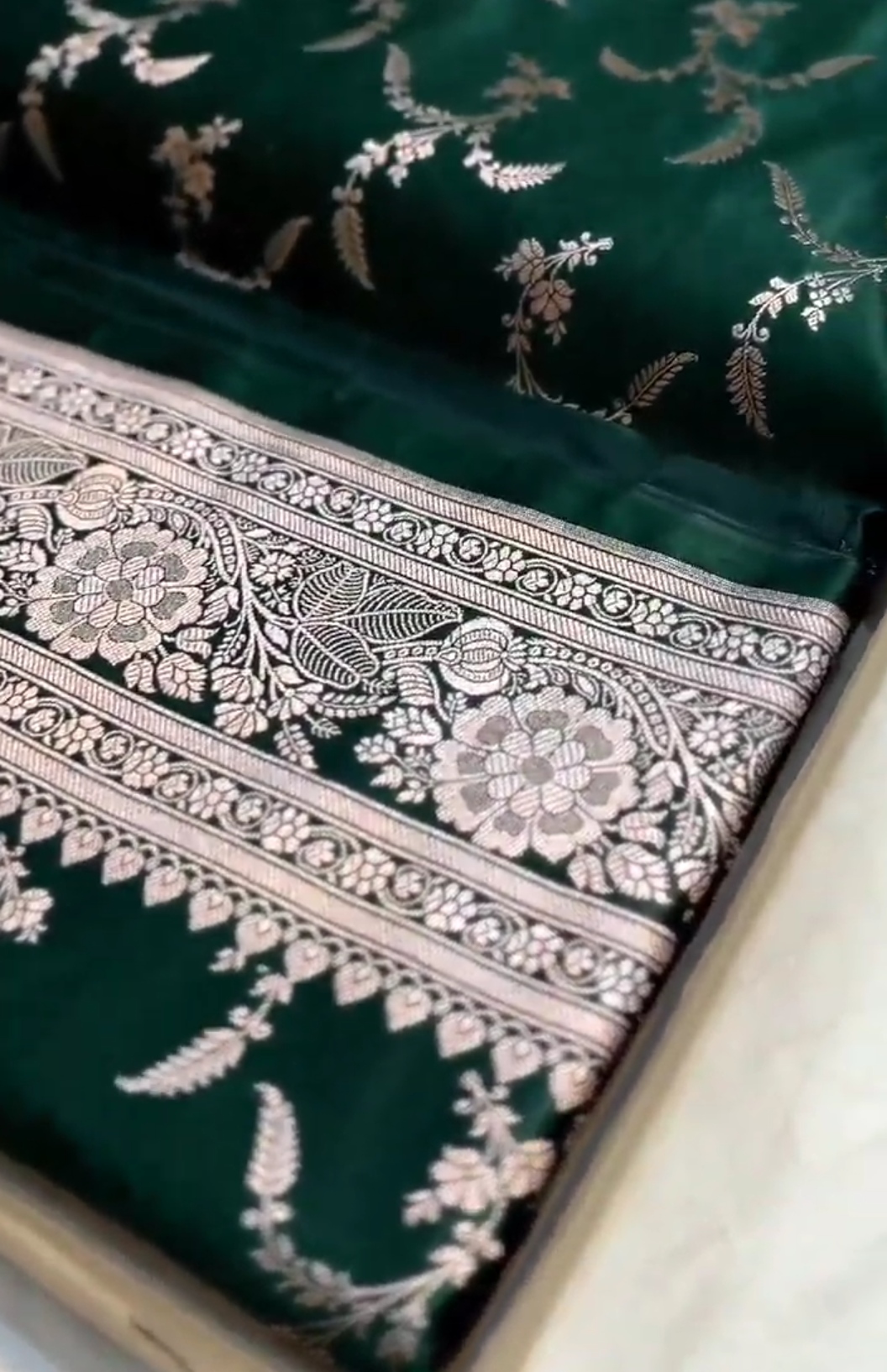 Bottle Green Banarasi Mashru Soft Silk Saree