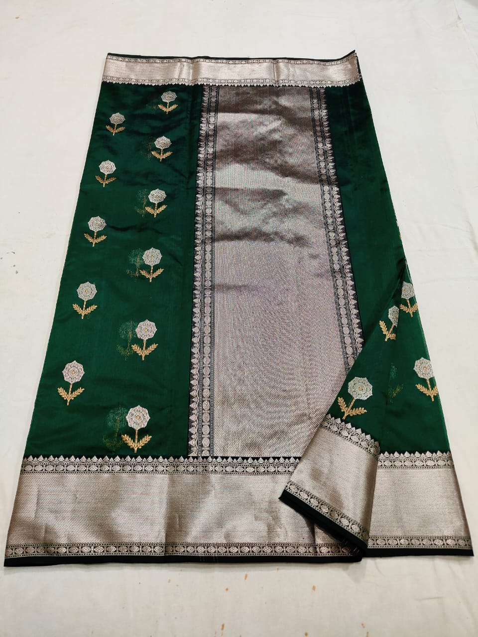 Bottle Green Chanderi Handloom Pattu Silk Meenakari Saree