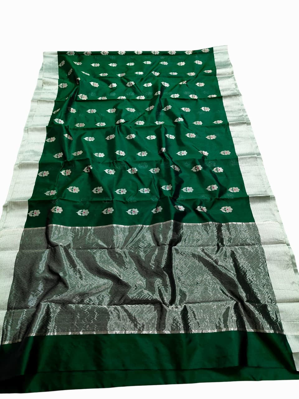 Bottle Green Chanderi Handloom Pattu Silk Meenakari Saree
