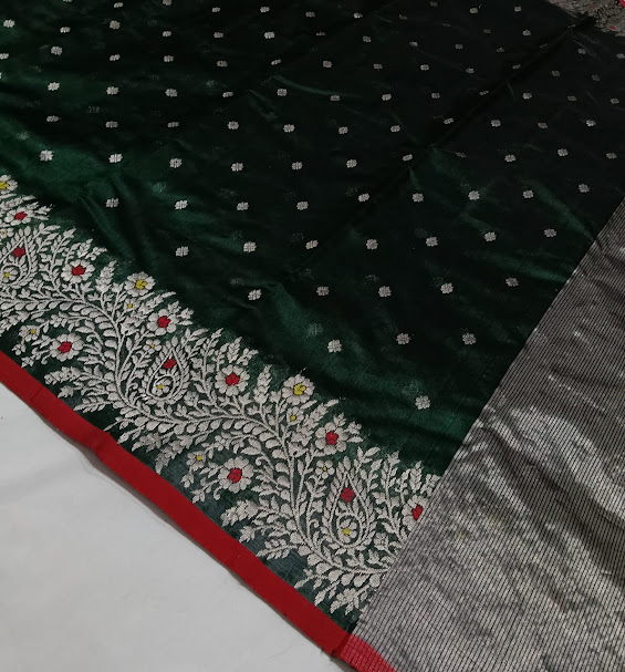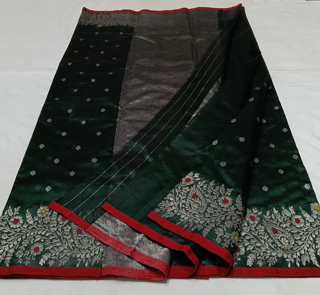 Bottle Green Chanderi Handloom Pattu Silk Meenakari Saree
