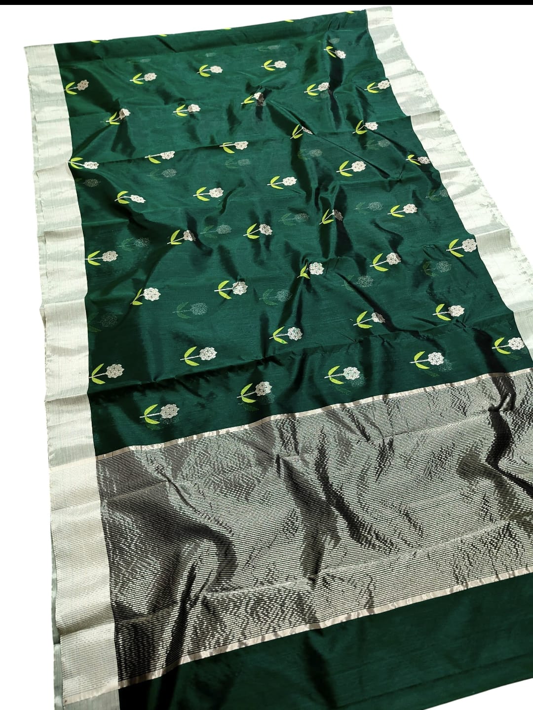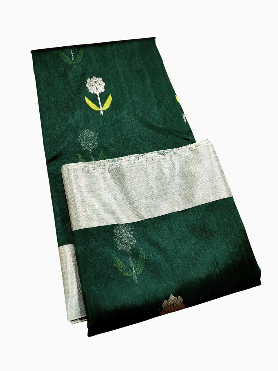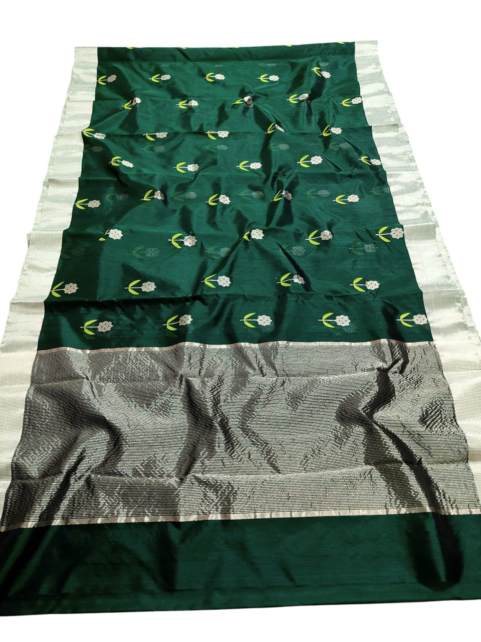 Bottle Green Chanderi Handloom Pattu Silk Meenakari Saree