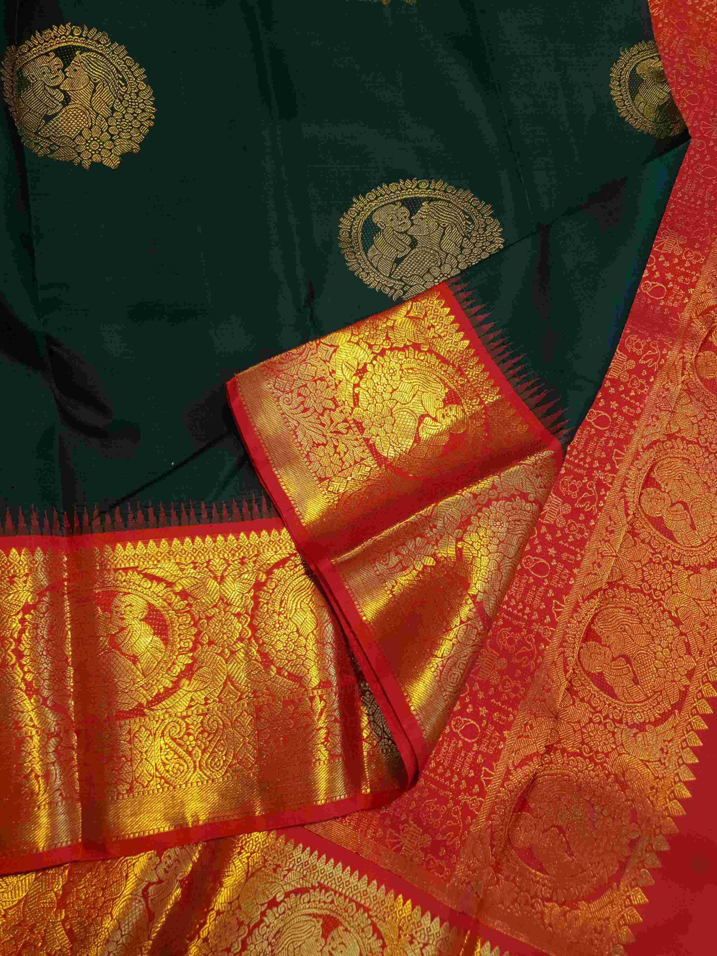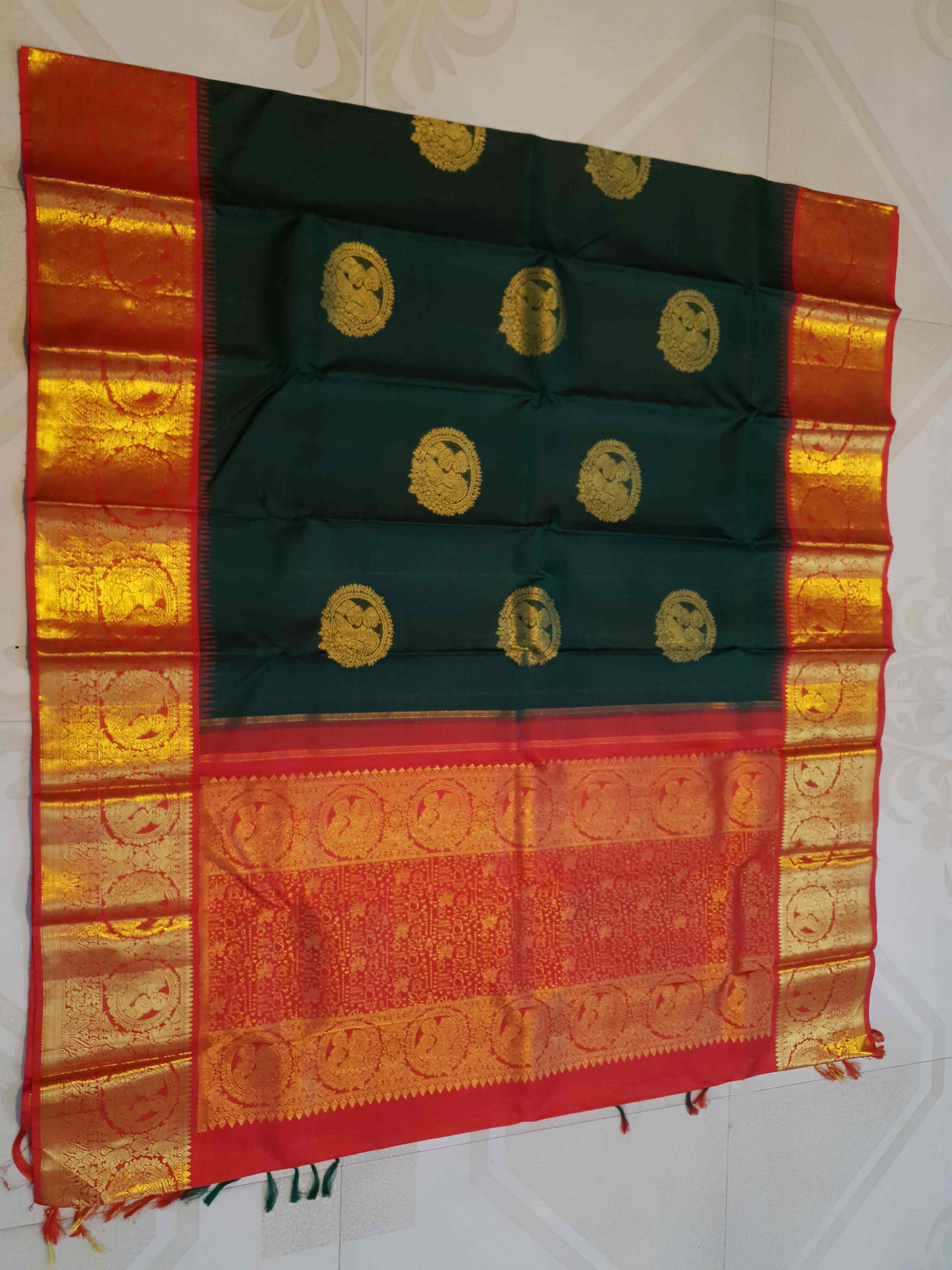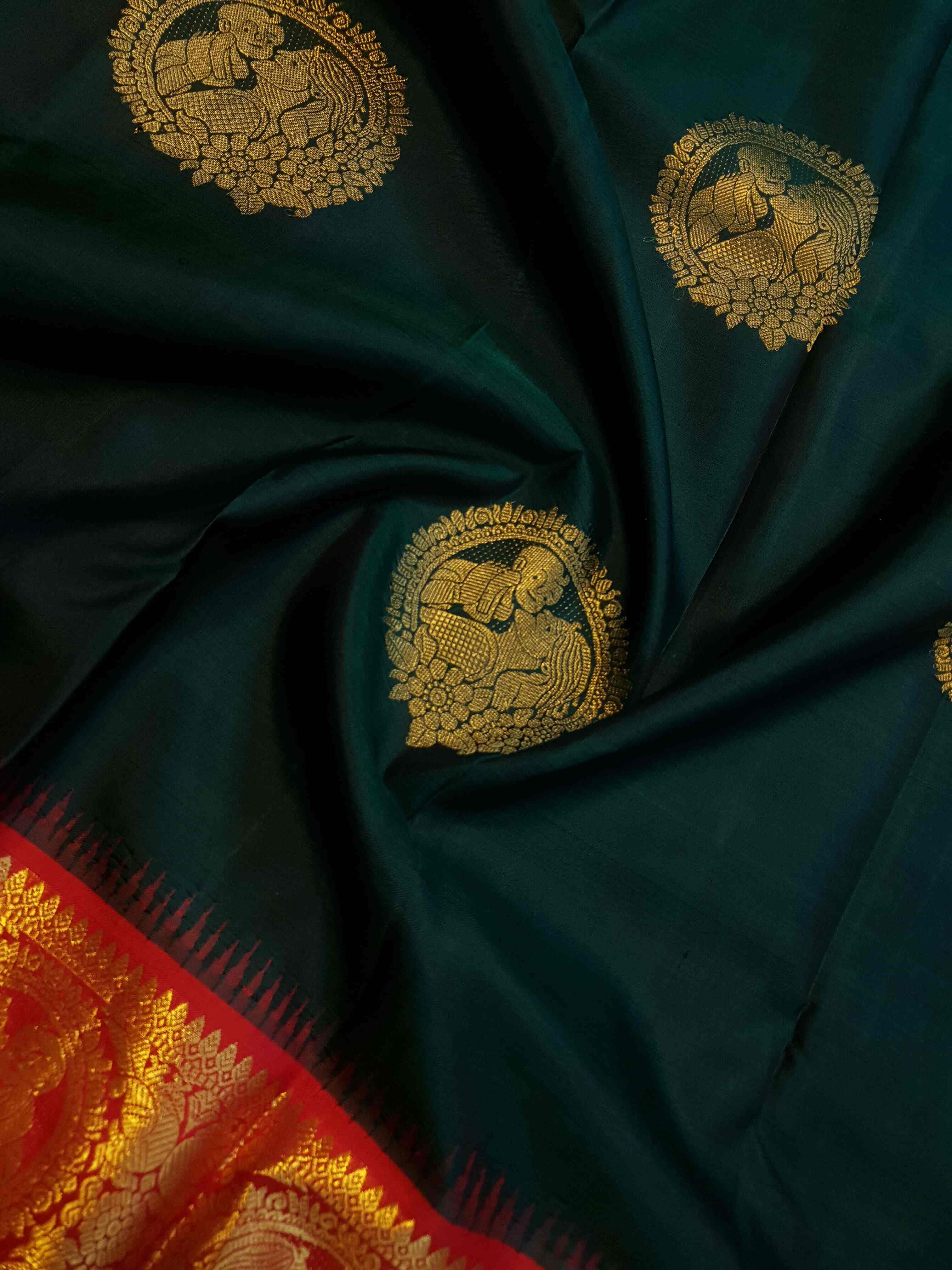 Bottle Green Kanchipuram Handloom 2G Gold Baby Shower Korvai Silk Saree