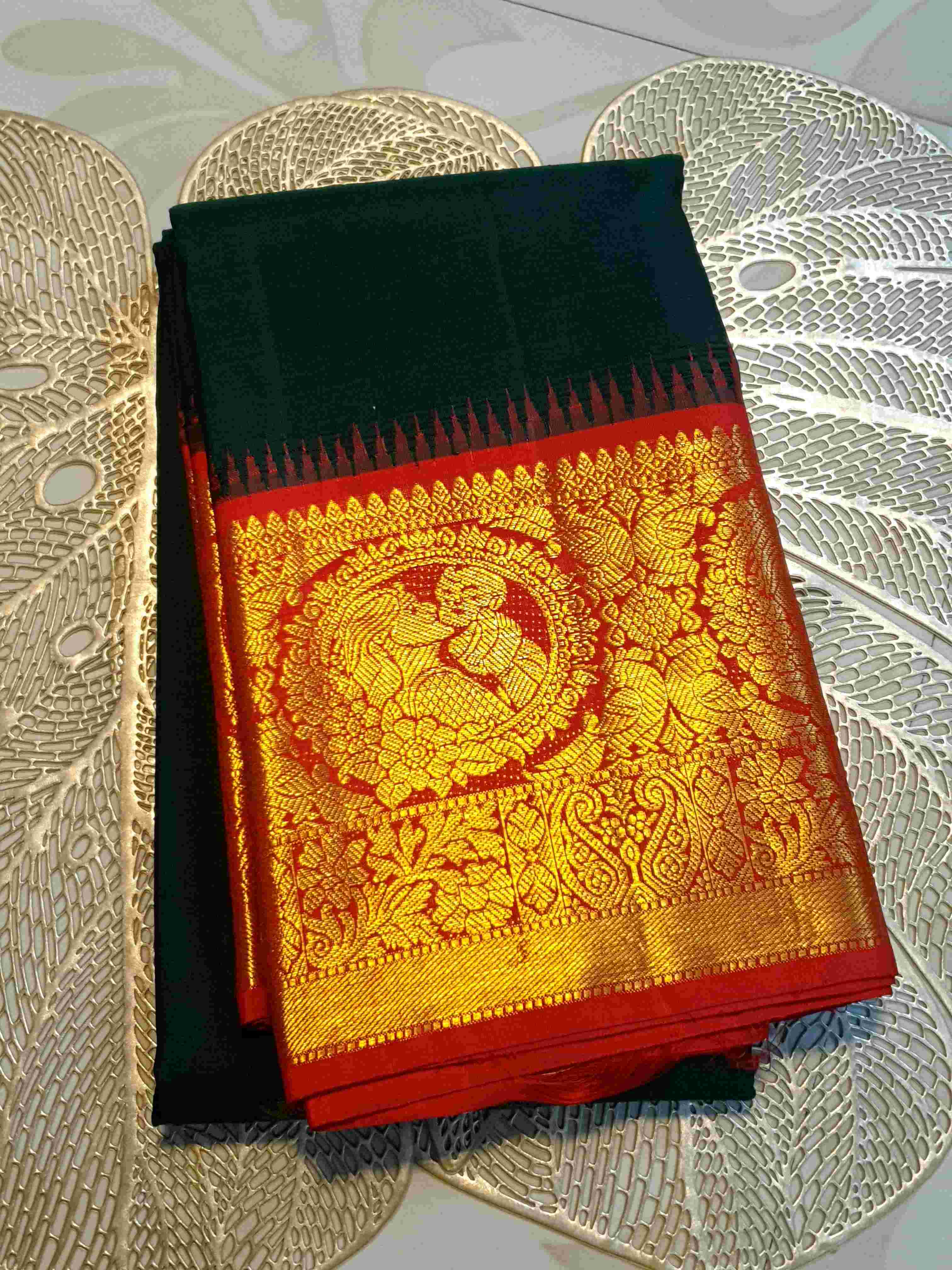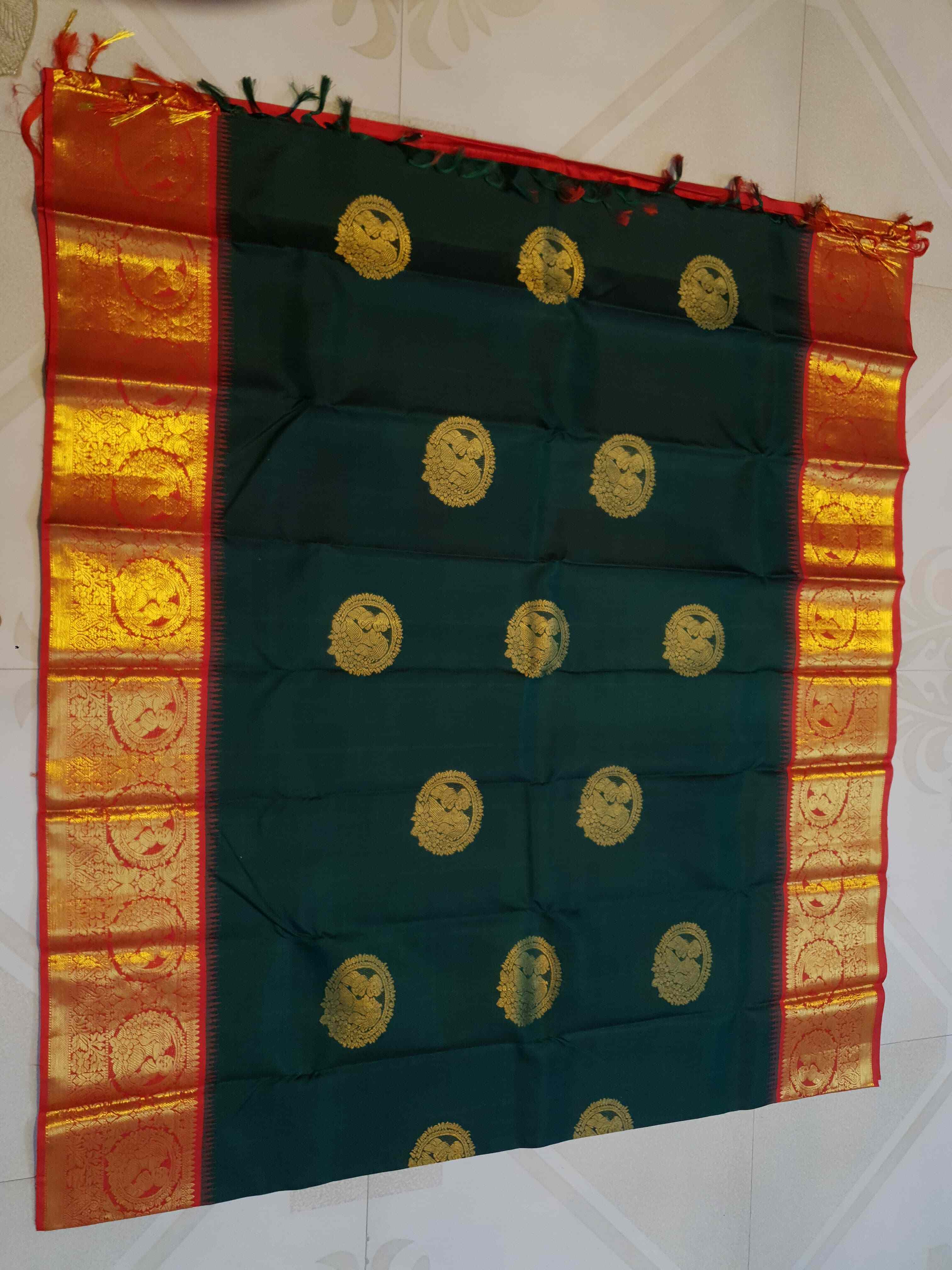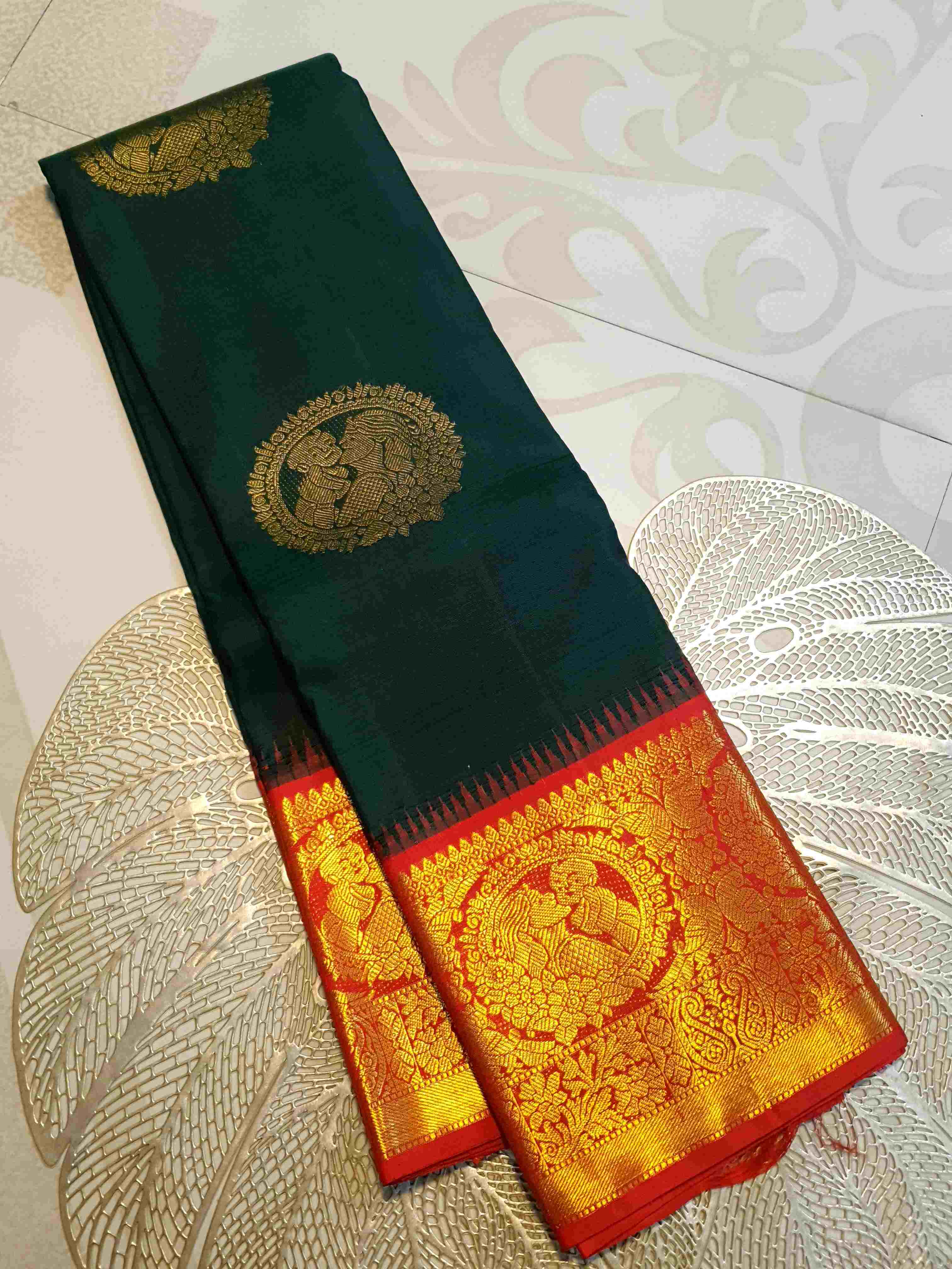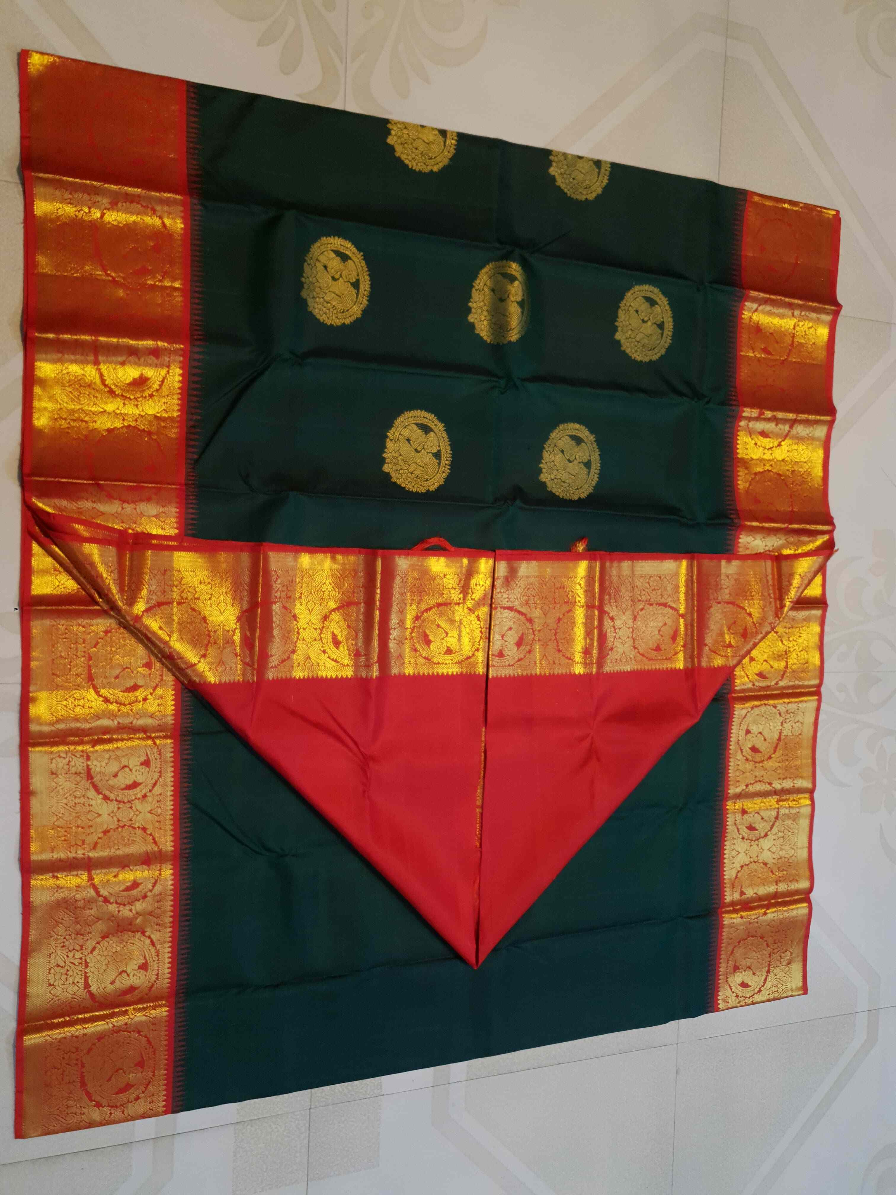 Bottle Green Kanchipuram Handloom 2G Gold Baby Shower Korvai Silk Saree
