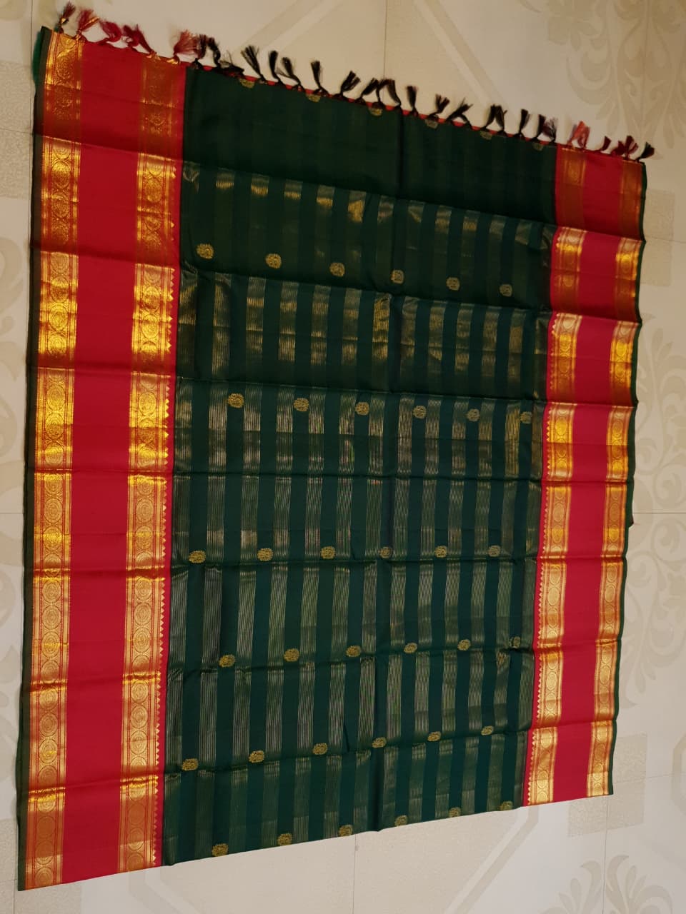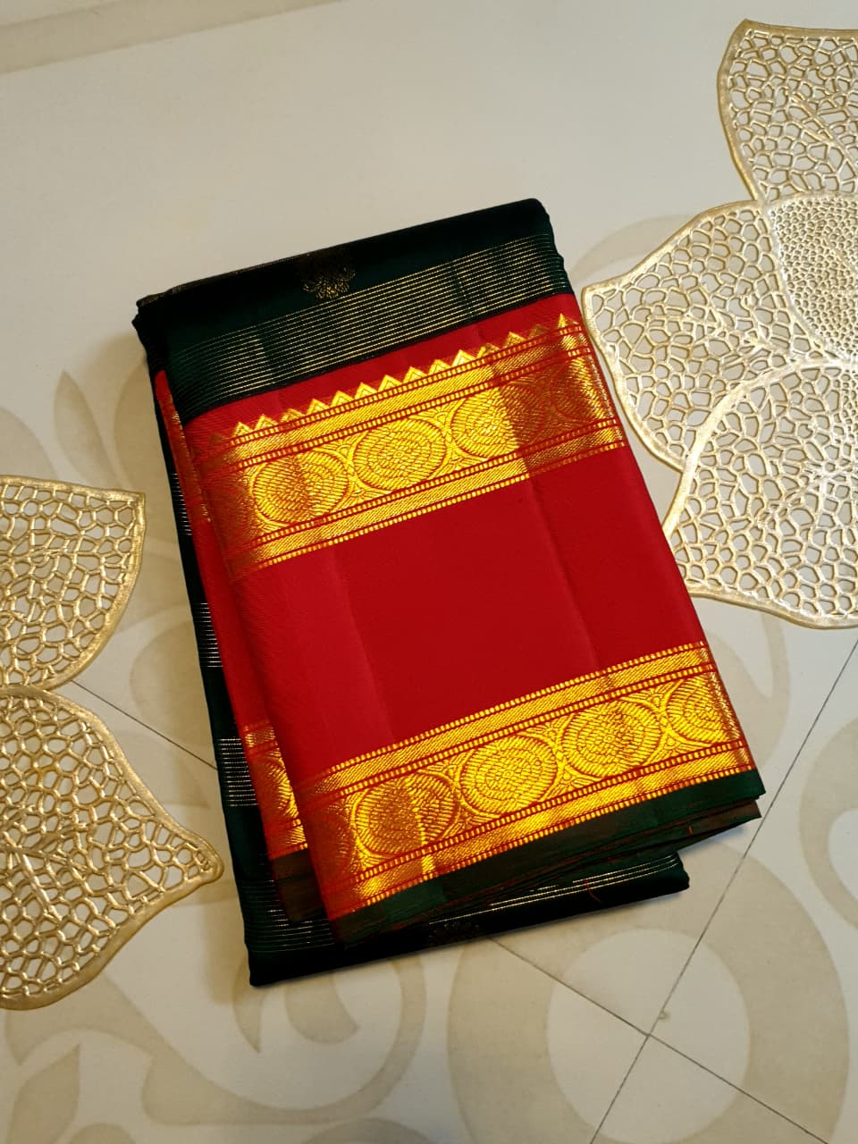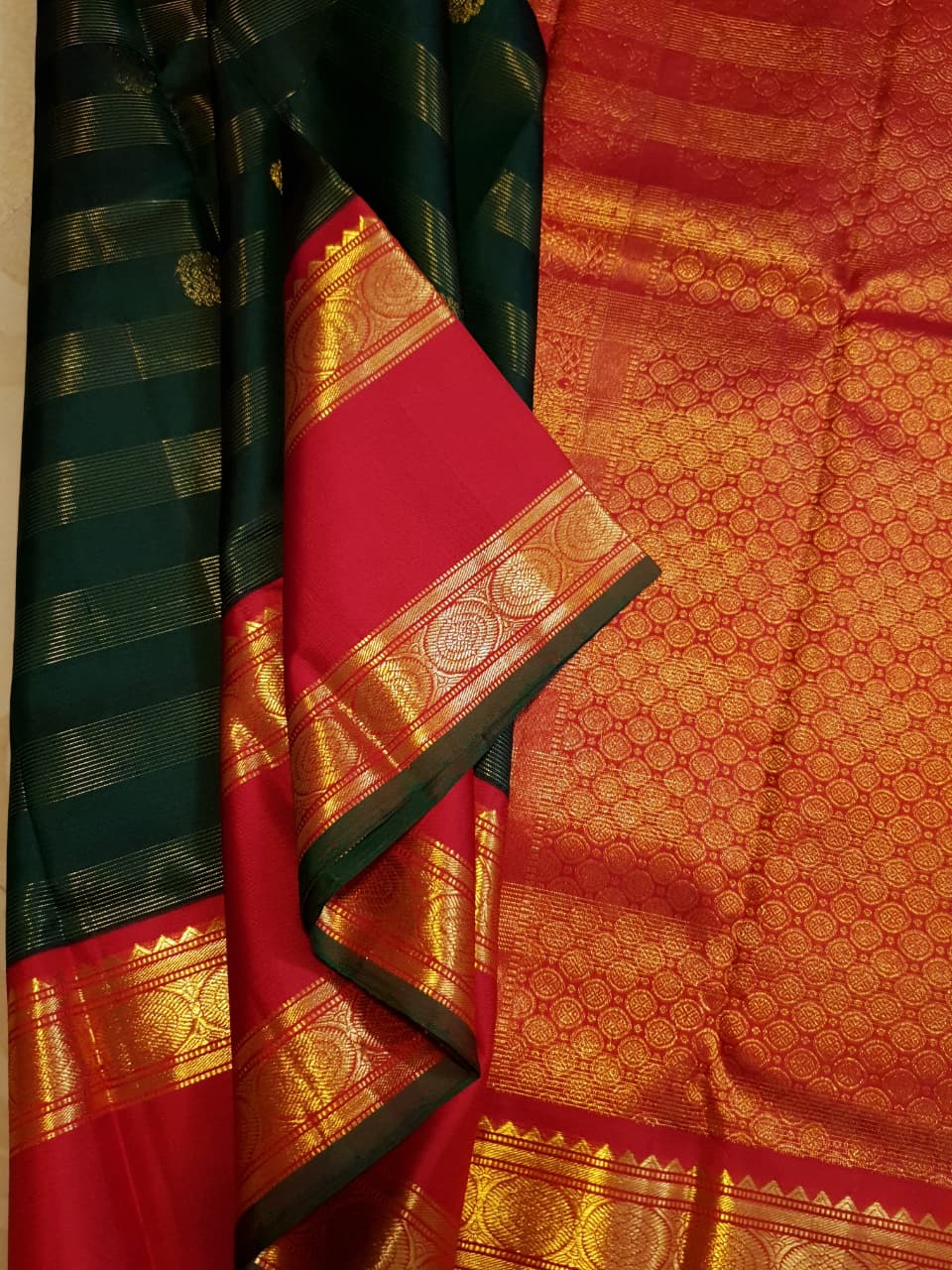 Bottle Green Kanchipuram Handloom 2G Gold Korvai Silk Saree