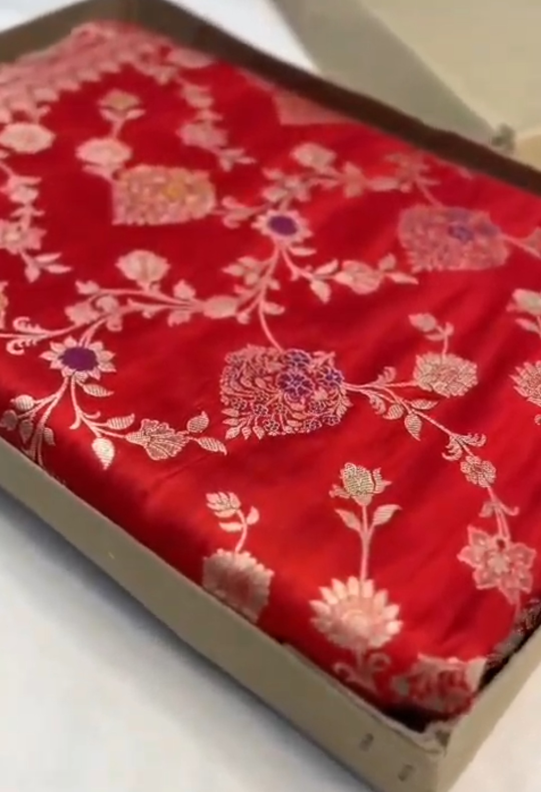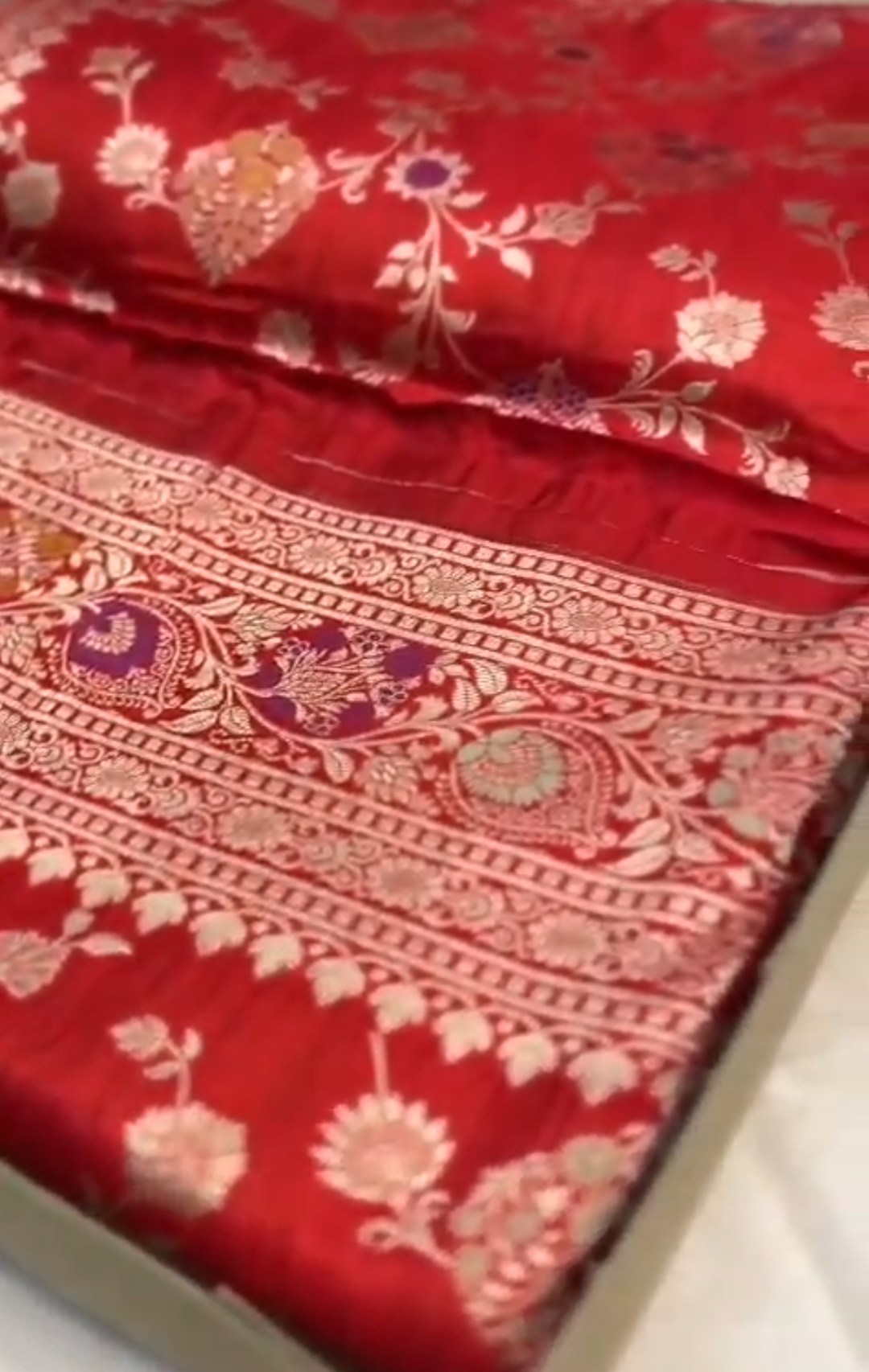 Red Banarasi Handloom Katan Silk Meenakari Saree