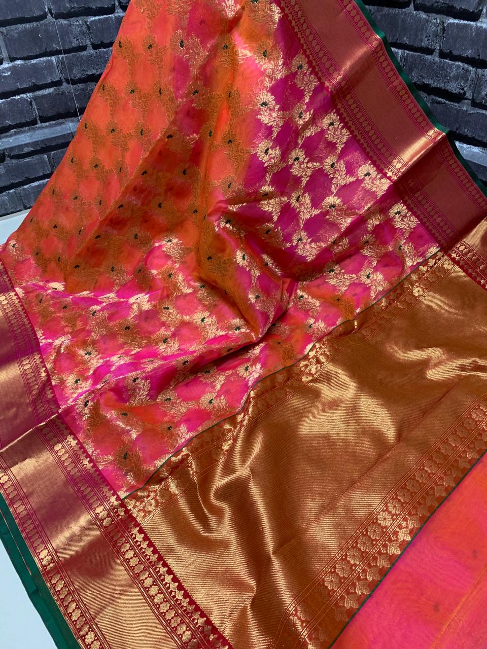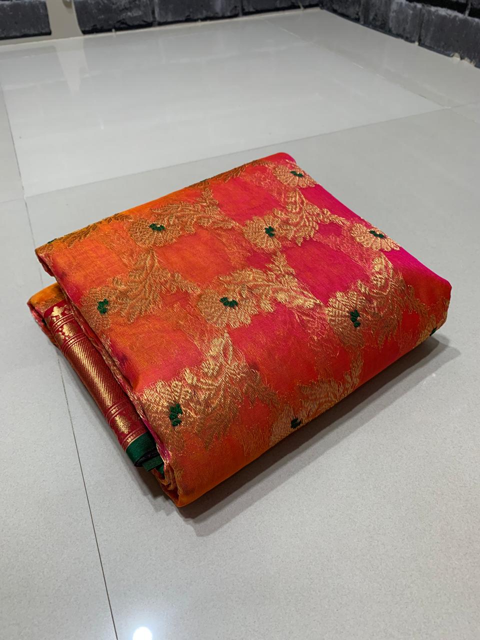 Orange Chanderi Handloom Katan Silk Nakshi Meenakari Saree