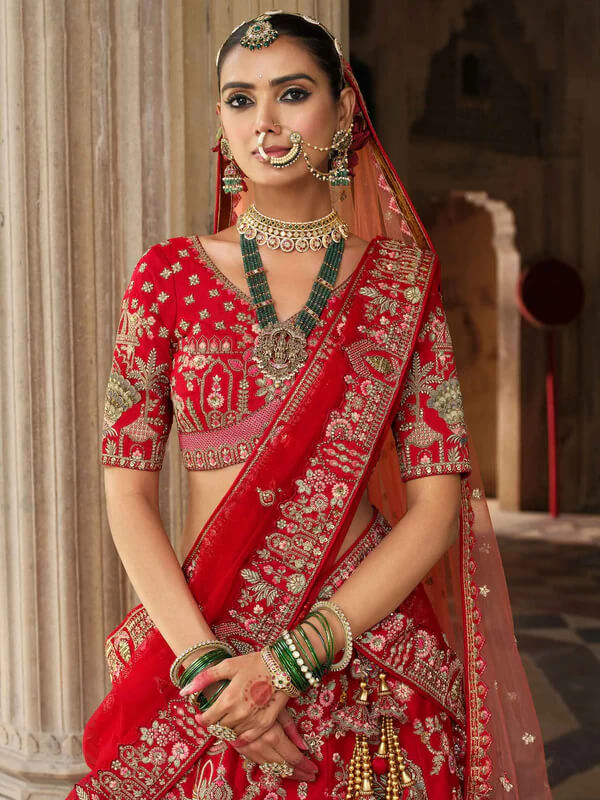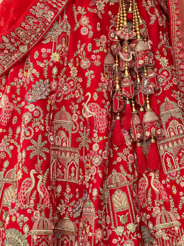 red bridal lehenga, khatli embroidery lehenga, double dupatta bridal lehenga, designer wedding outfit, traditional red lehenga, heavy embroidered bridal wear
