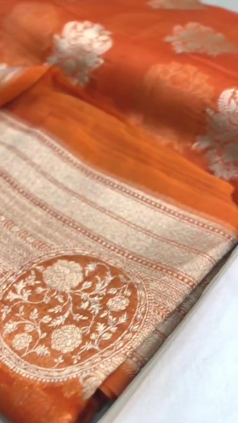 Banarasi Handloom Kora Silk Saree, Banarasi Handloom Pure Kora Organza Silk Saree