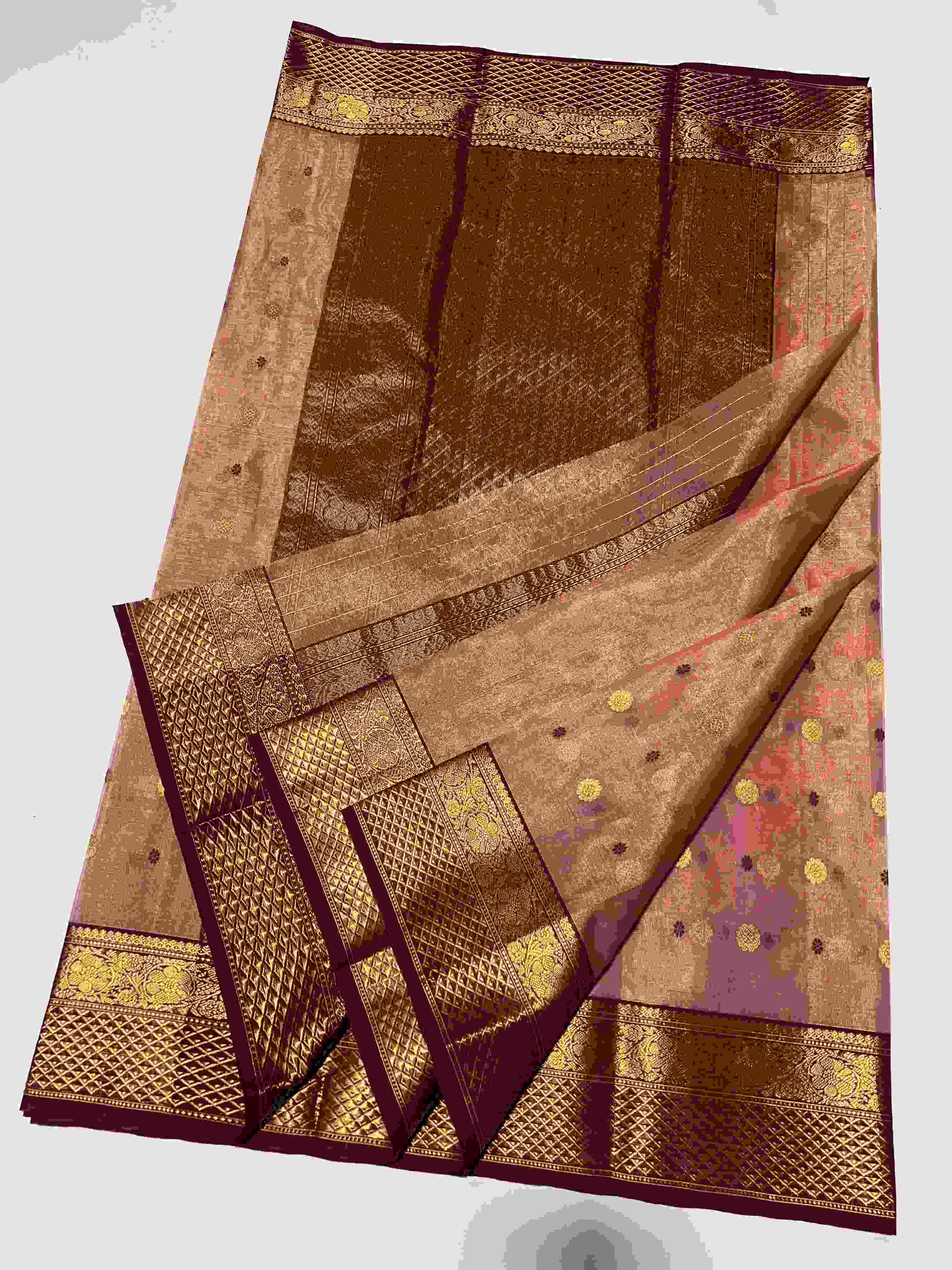 Gold Chanderi Handloom Katan Tissue Silk Saree
