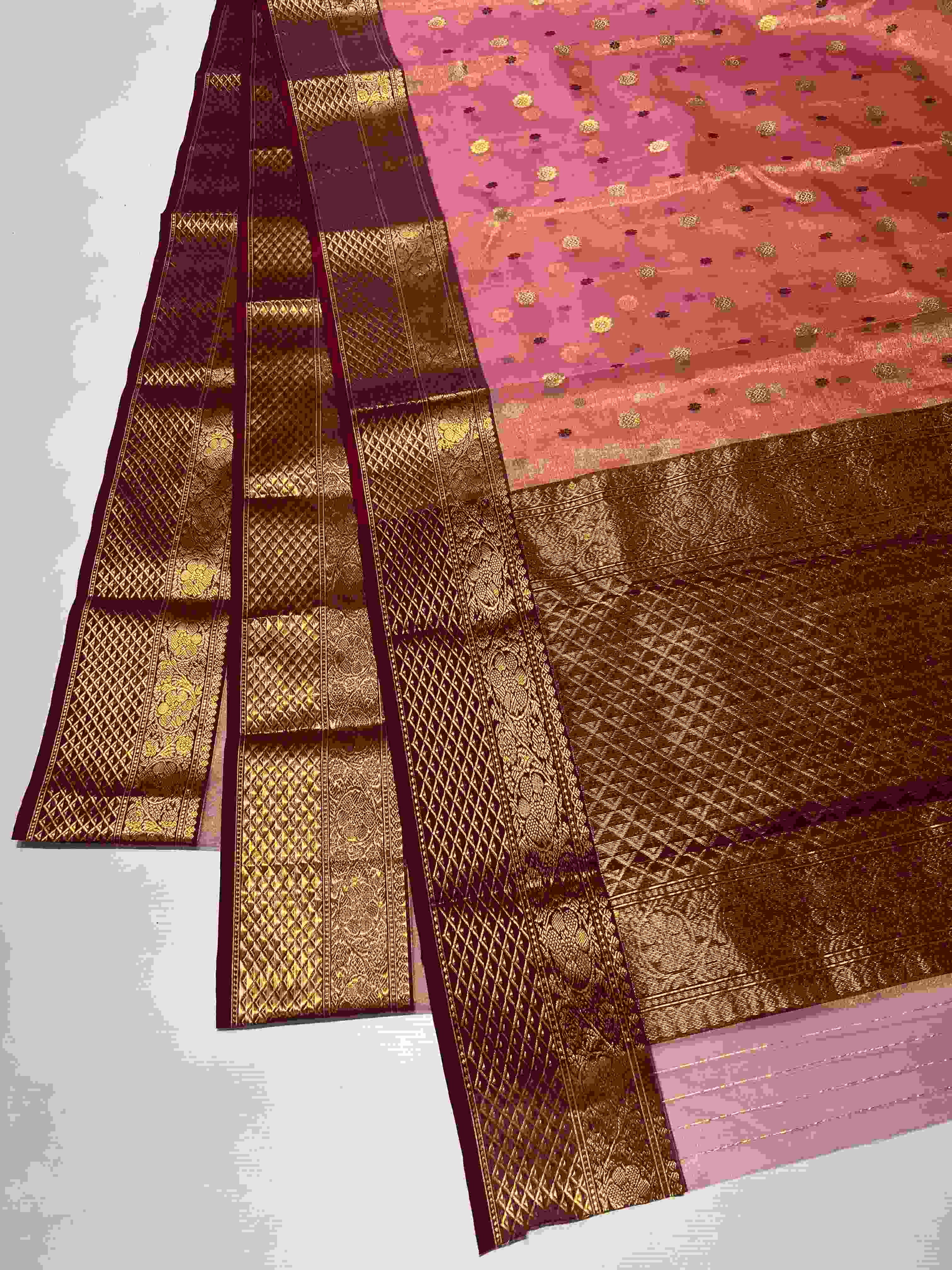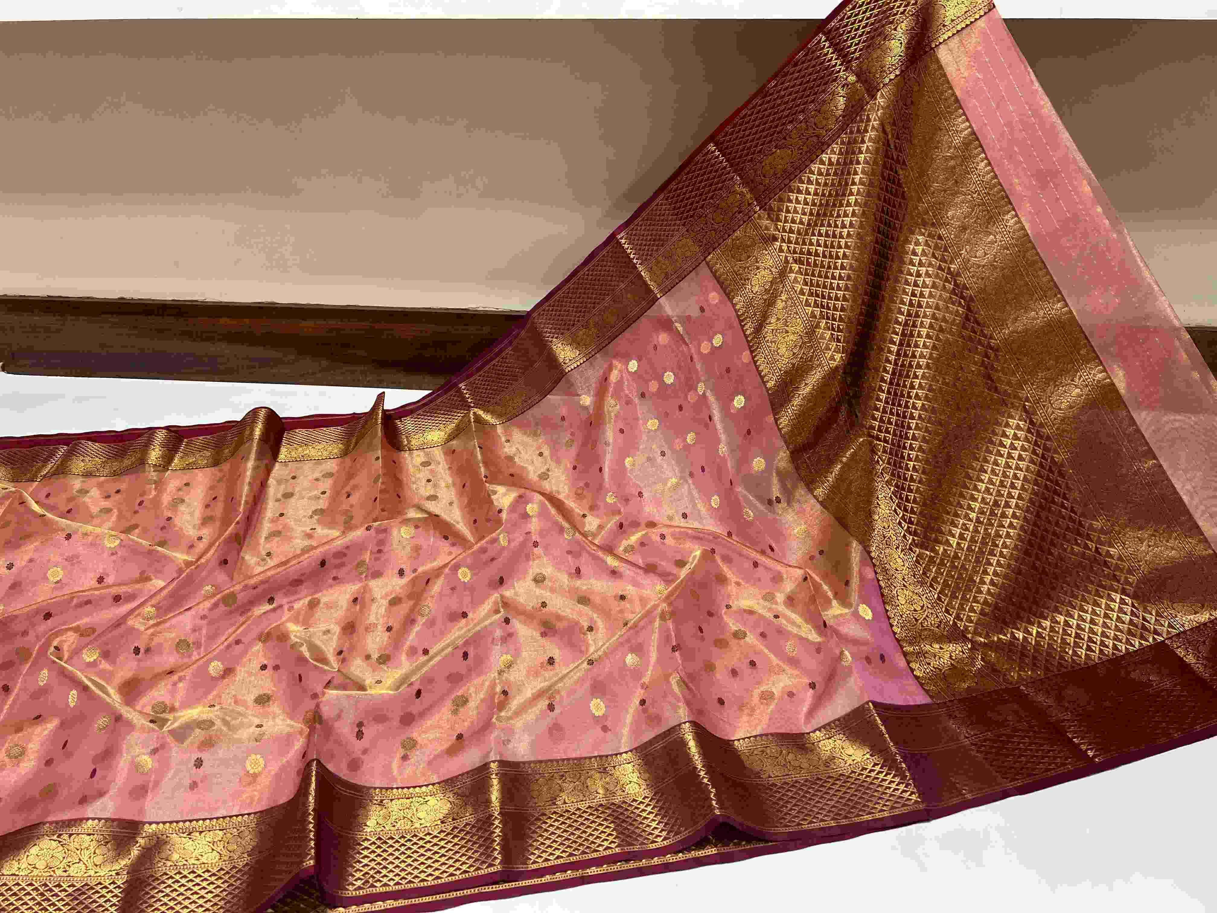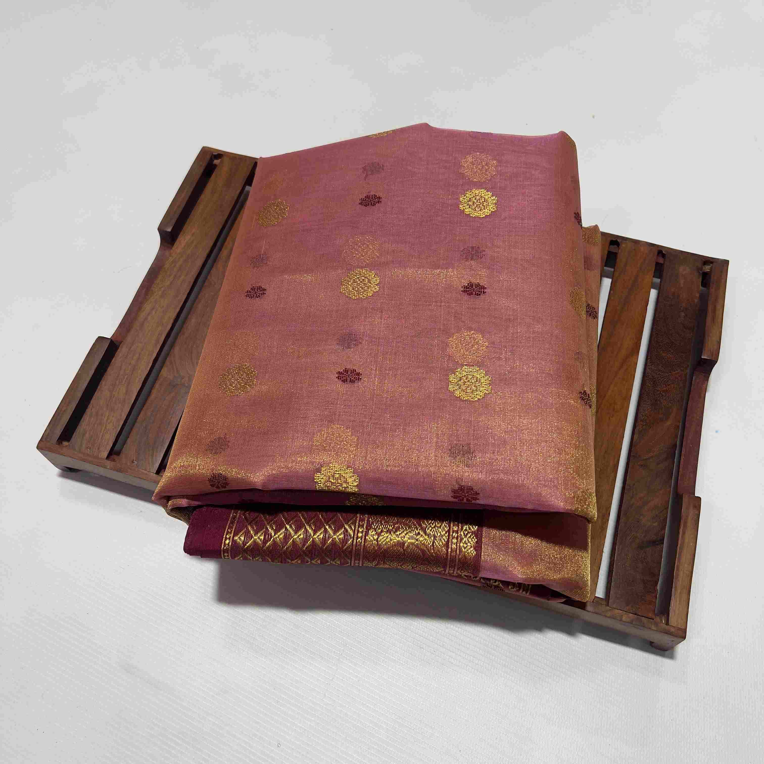 Coral Chanderi Handloom Katan Tissue Silk Saree