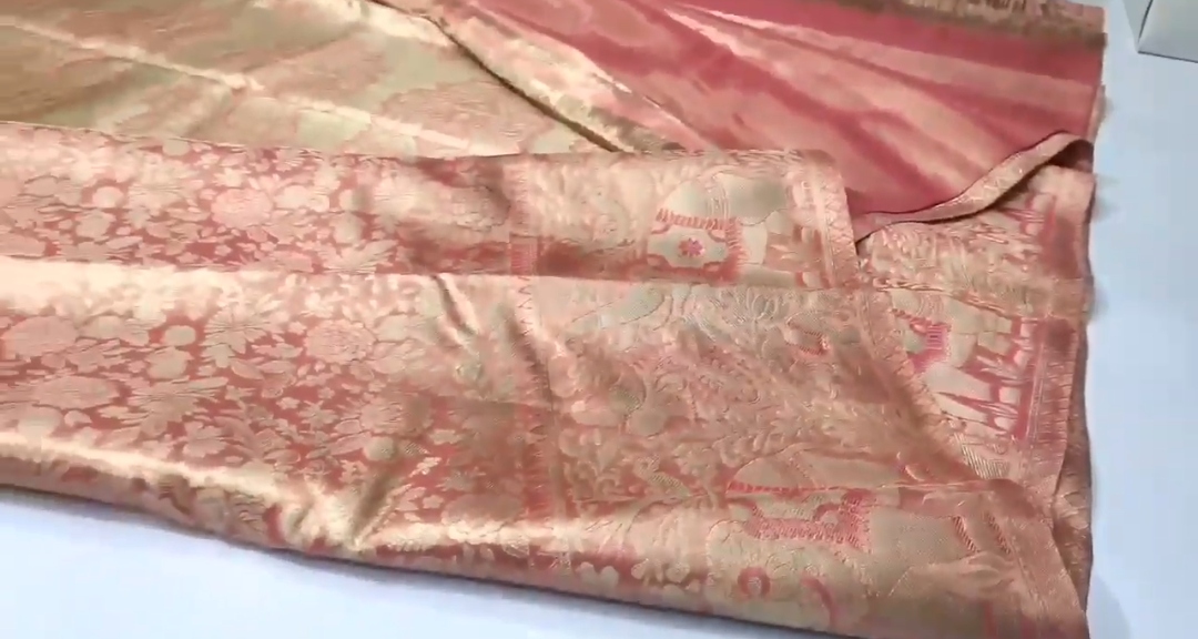Peach Kanchipuram Handloom Tissue Brocade Paithani Silk Saree