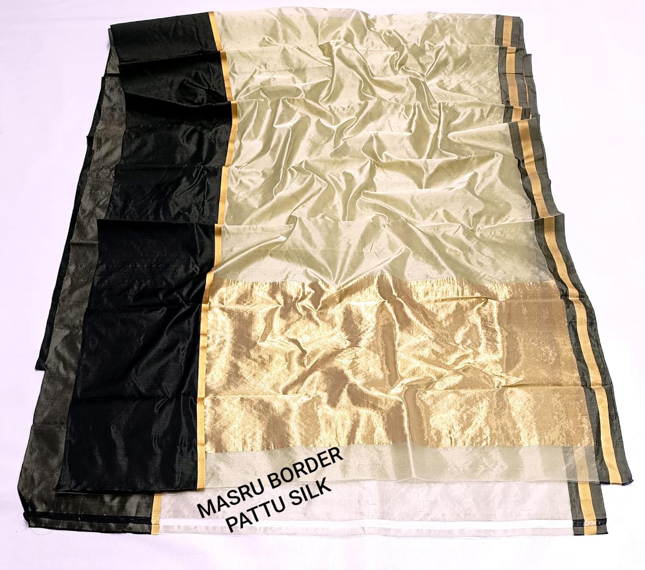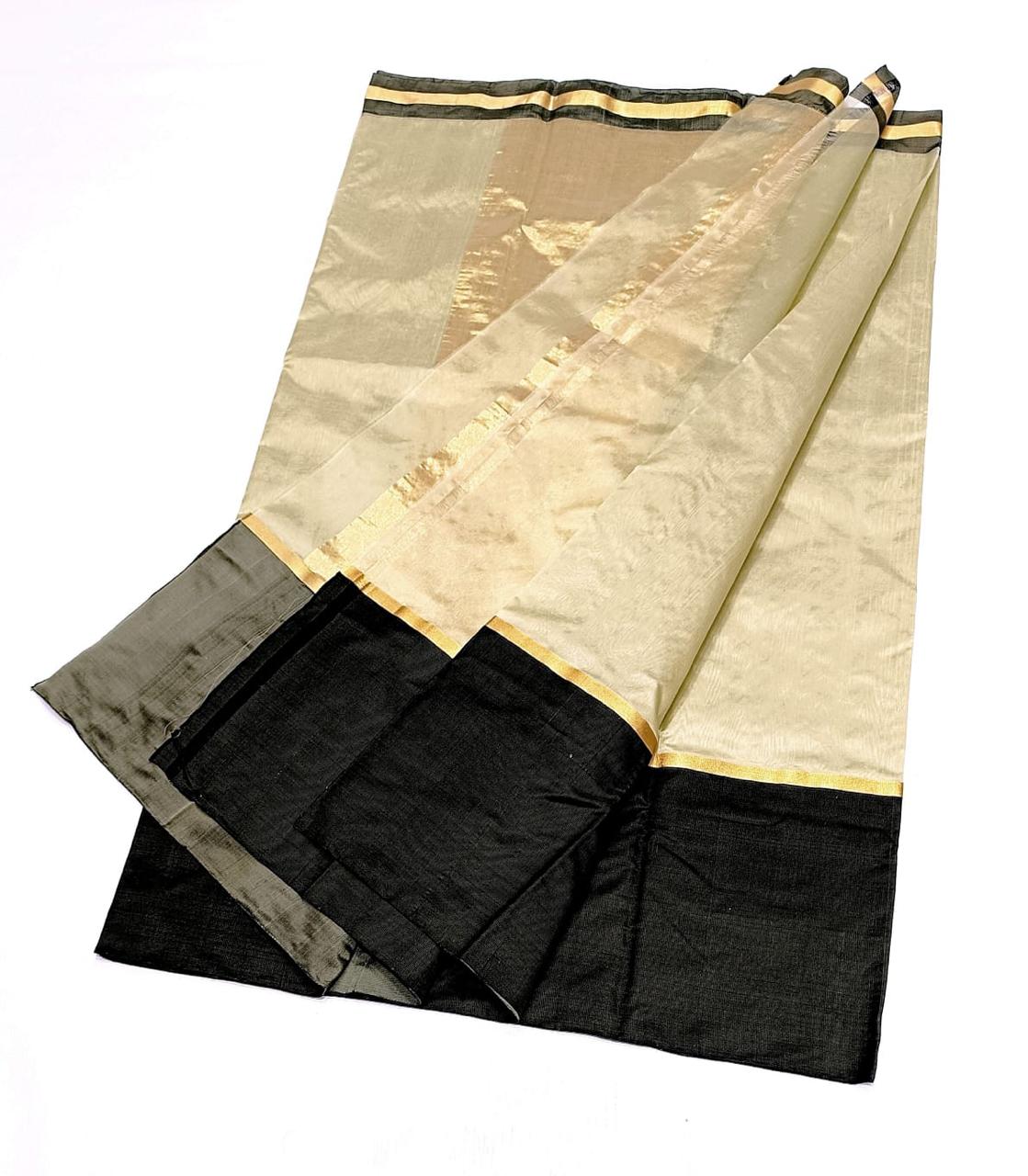 Black Chanderi Handloom Pattu Silk Mashru Borders Saree