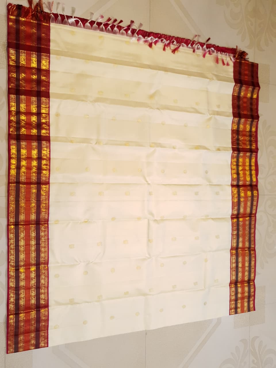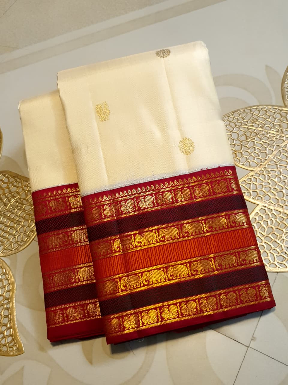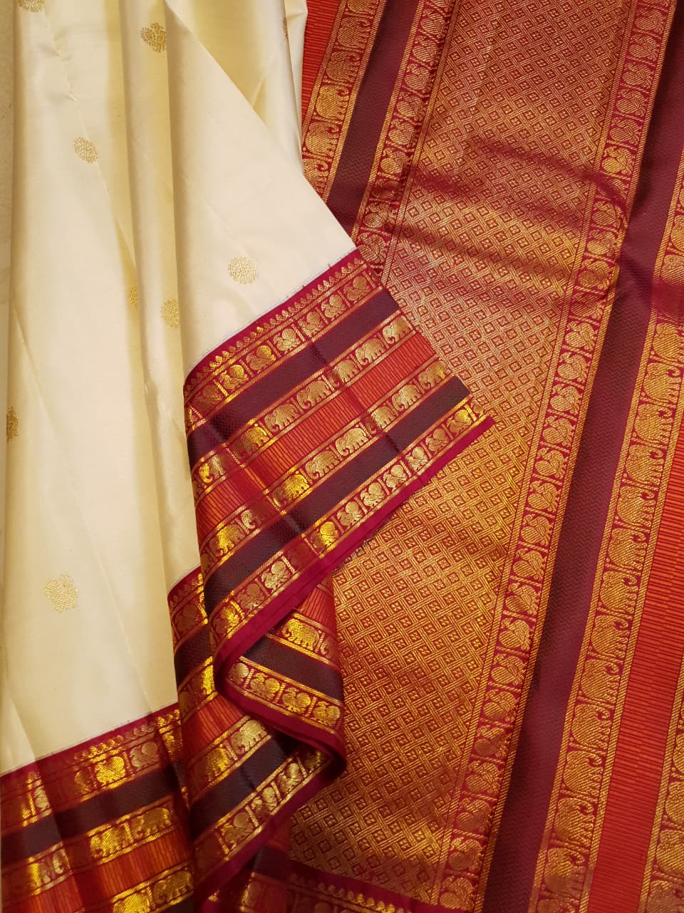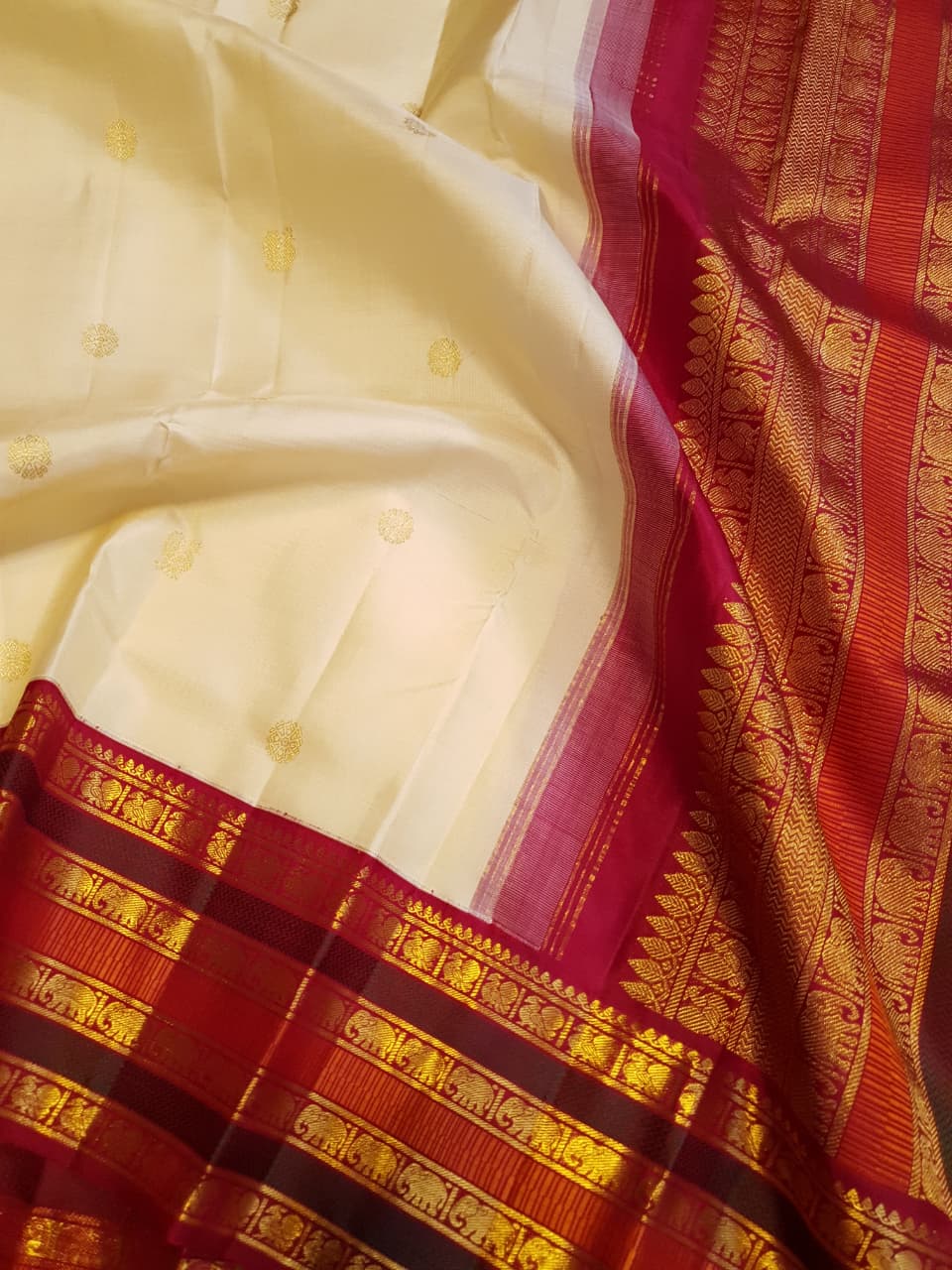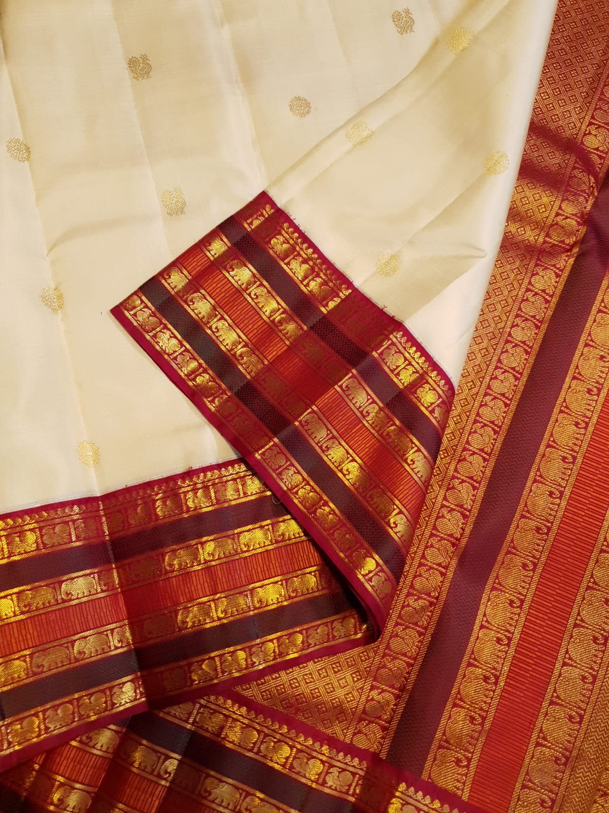 Cream Kanchipuram Handloom 2G Gold Korvai Silk Saree