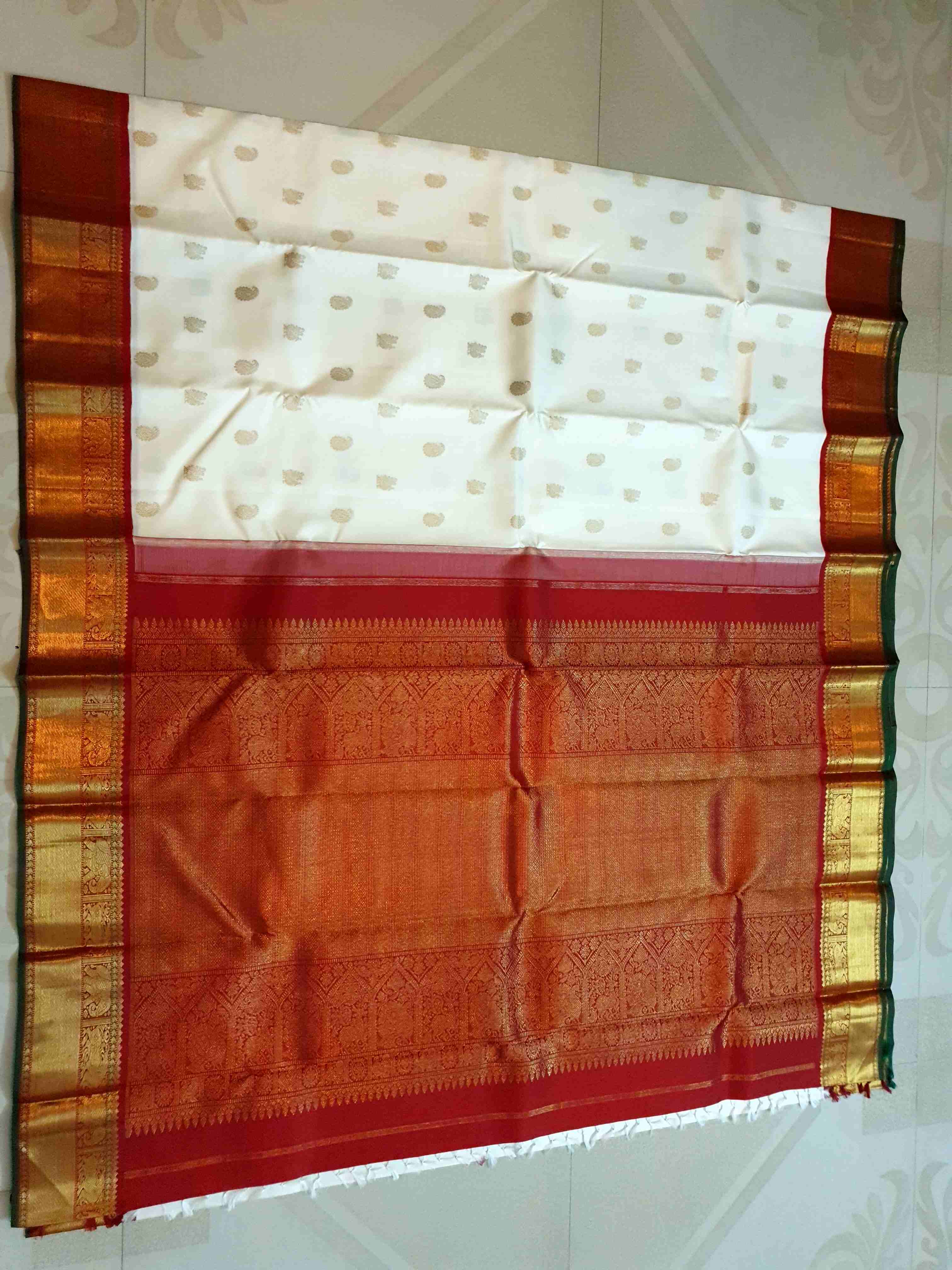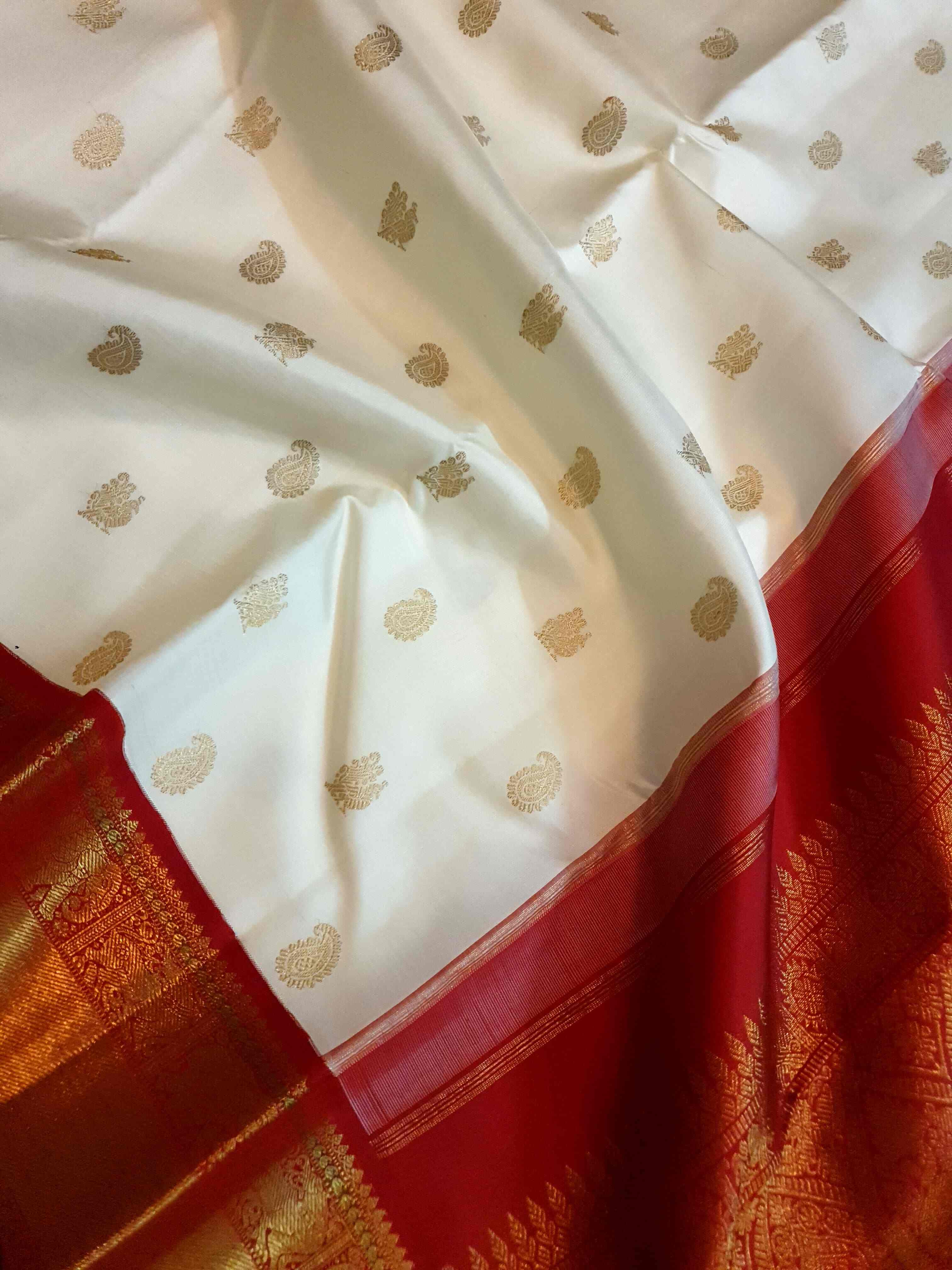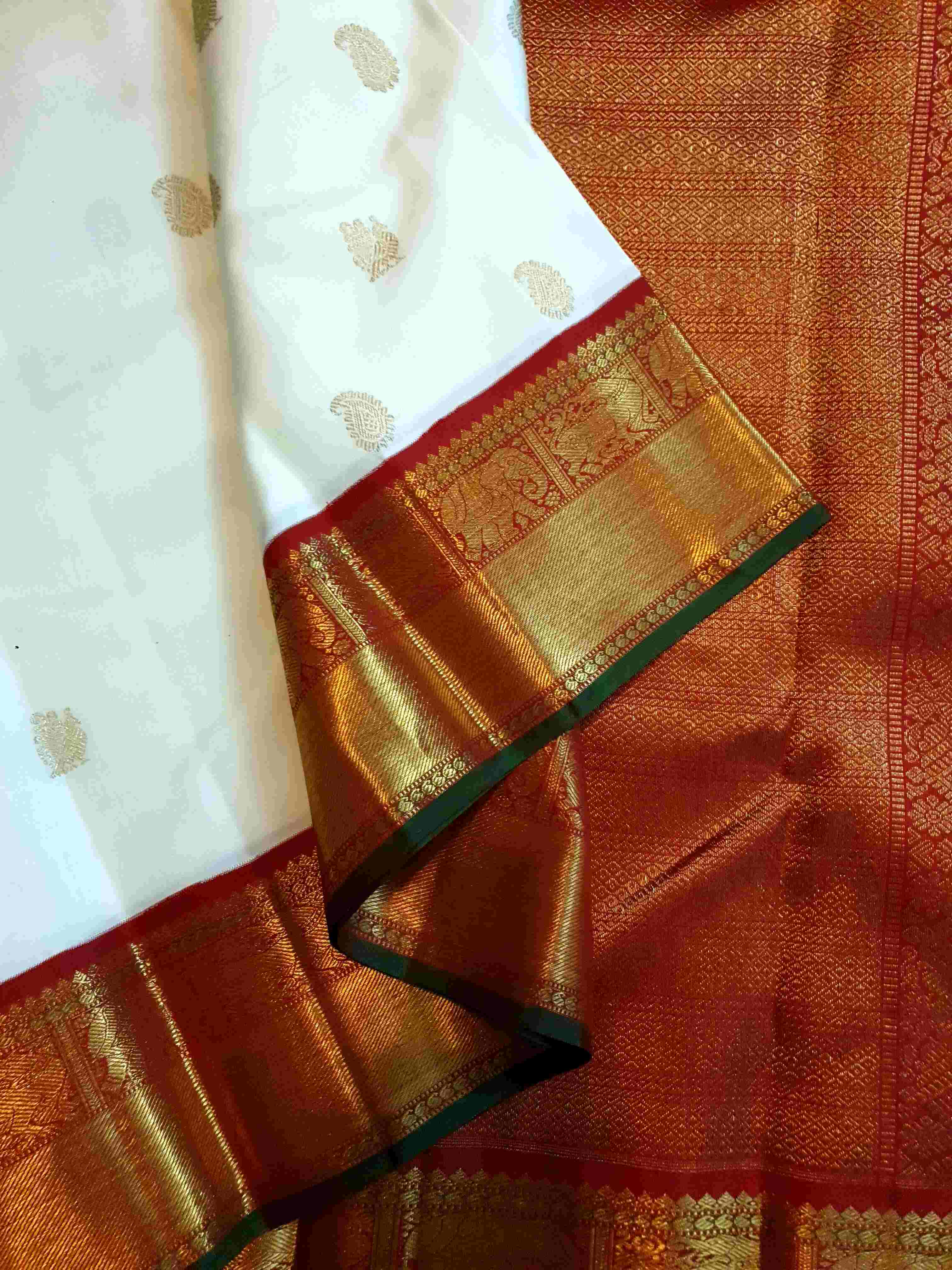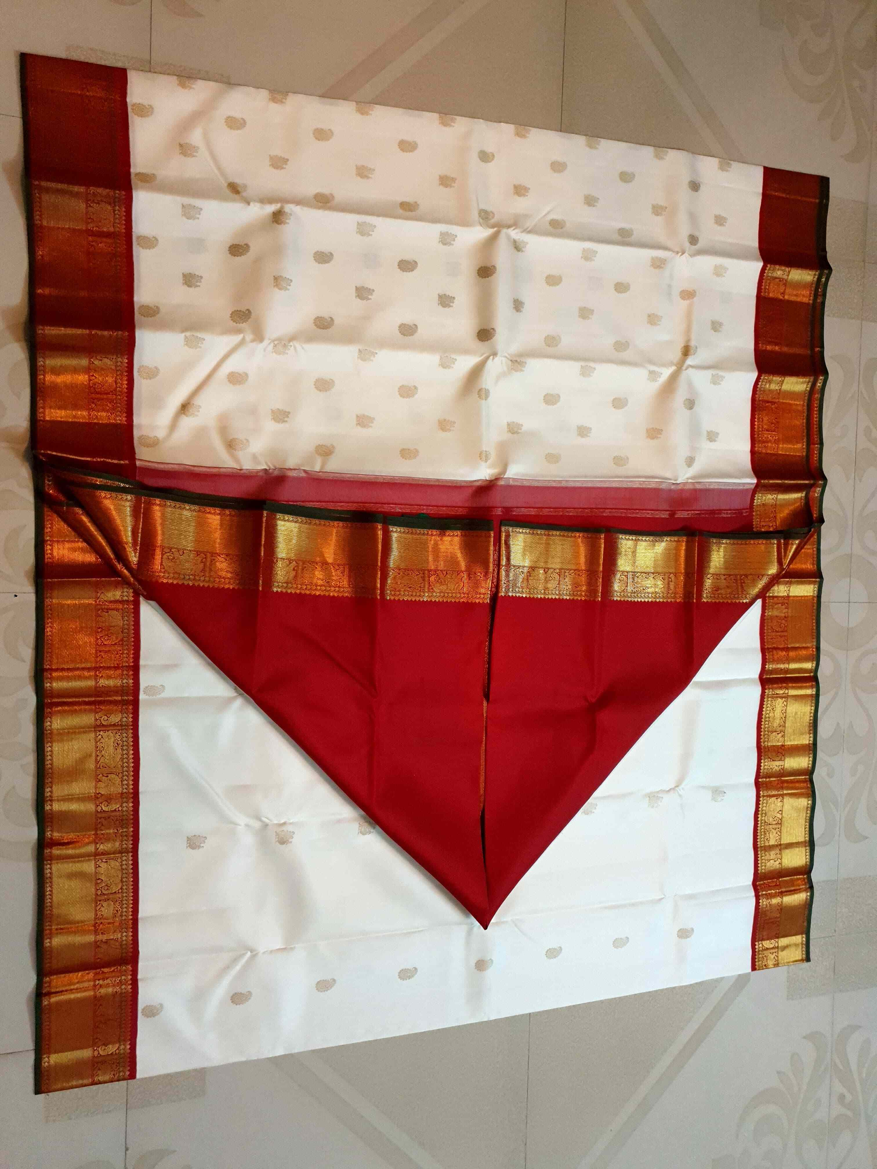 Cream Kanchipuram Handloom 4G Pure Gold Pattu Silk Saree