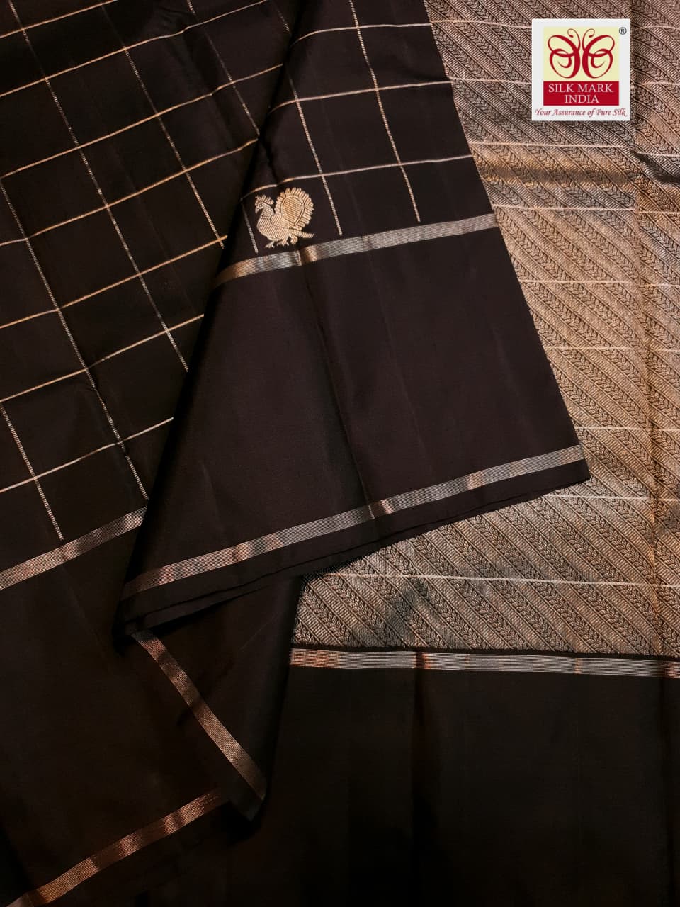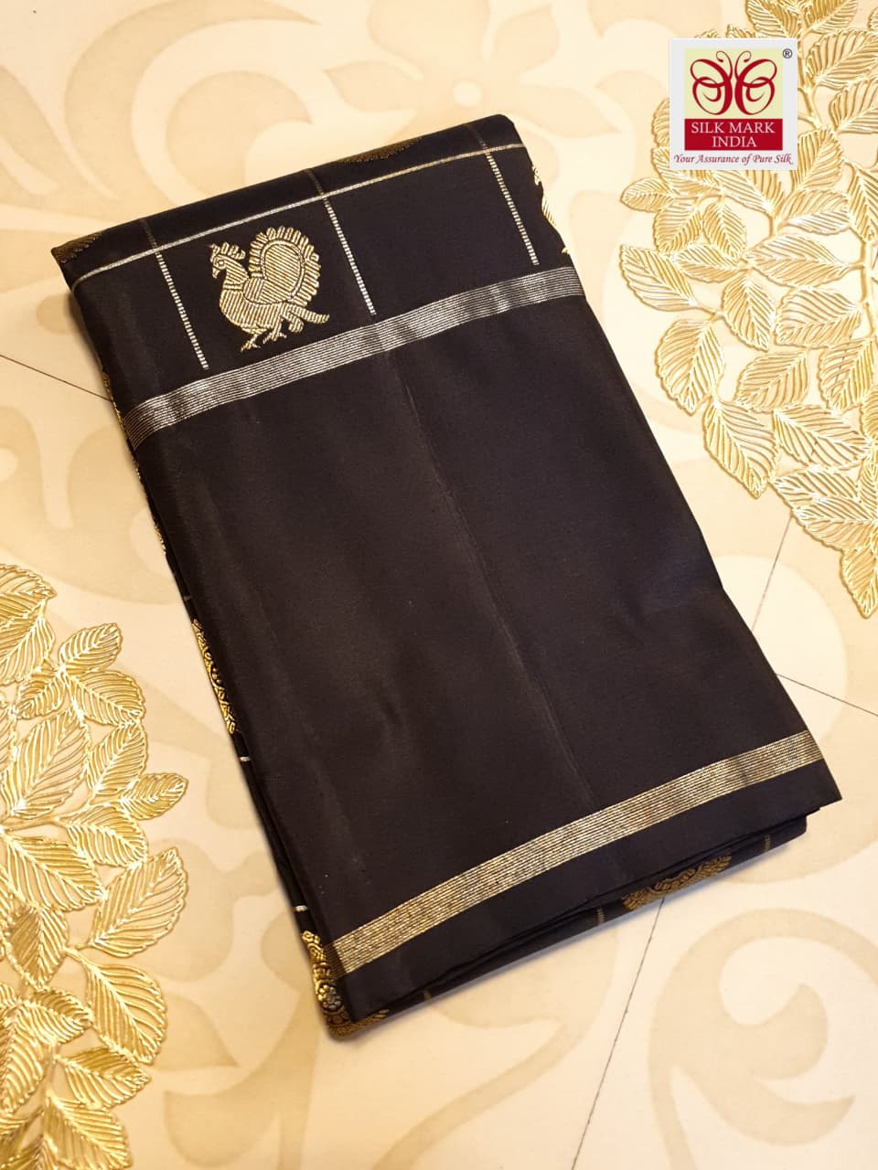 Dark Brown Kanchipuram Handloom 2G Gold Pattu Silk Saree