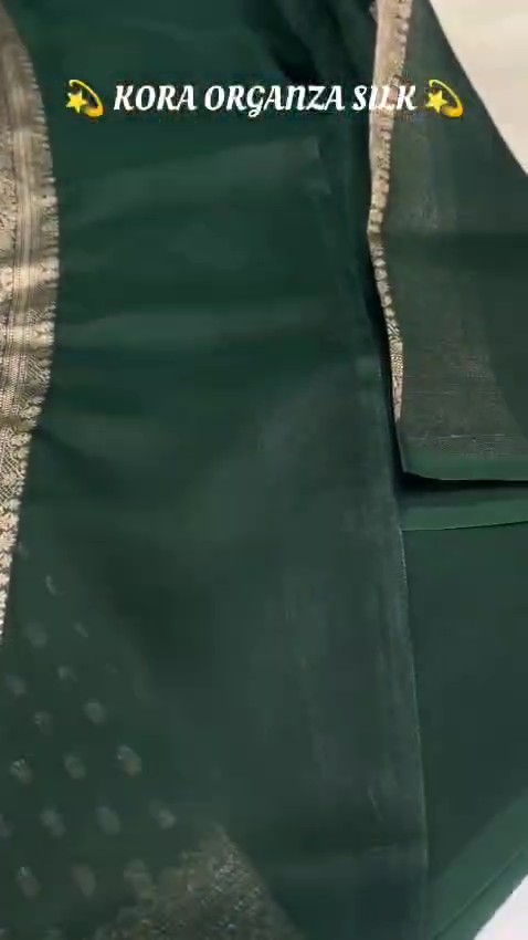 Dark Green.62 Banarasi Handloom Kora Organza Silk Saree