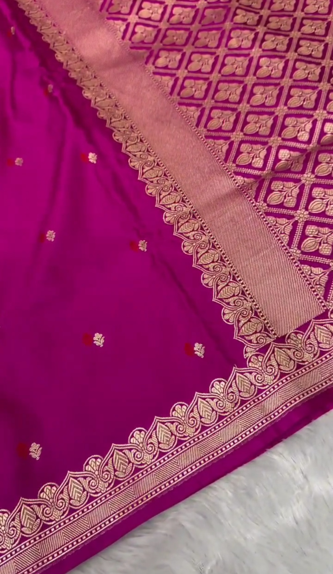Hot Pink Banarasi Mashru Soft Silk Saree