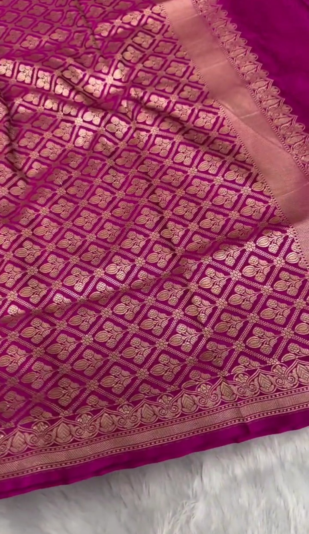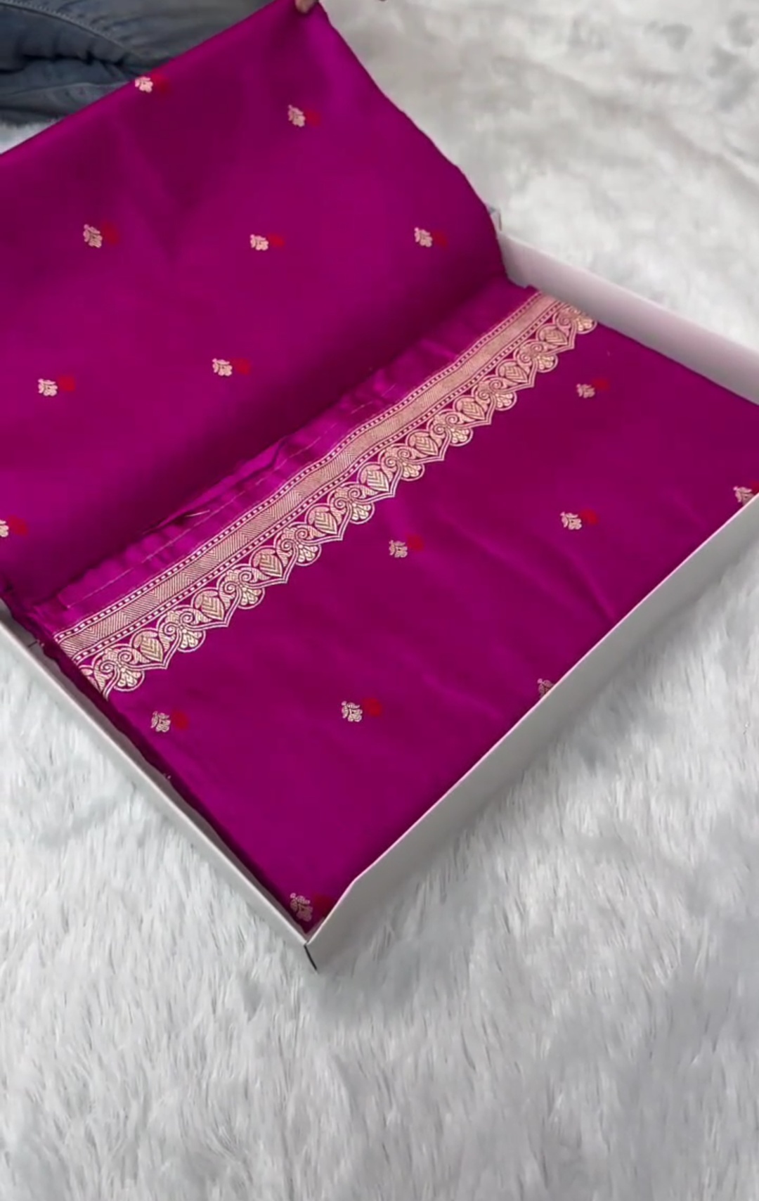 Dark Pink Banarasi Mashru Soft Silk Saree